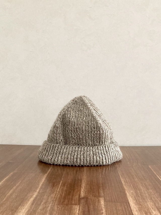 ニット帽手編みの帽子 グレー ニット帽子 mayuca