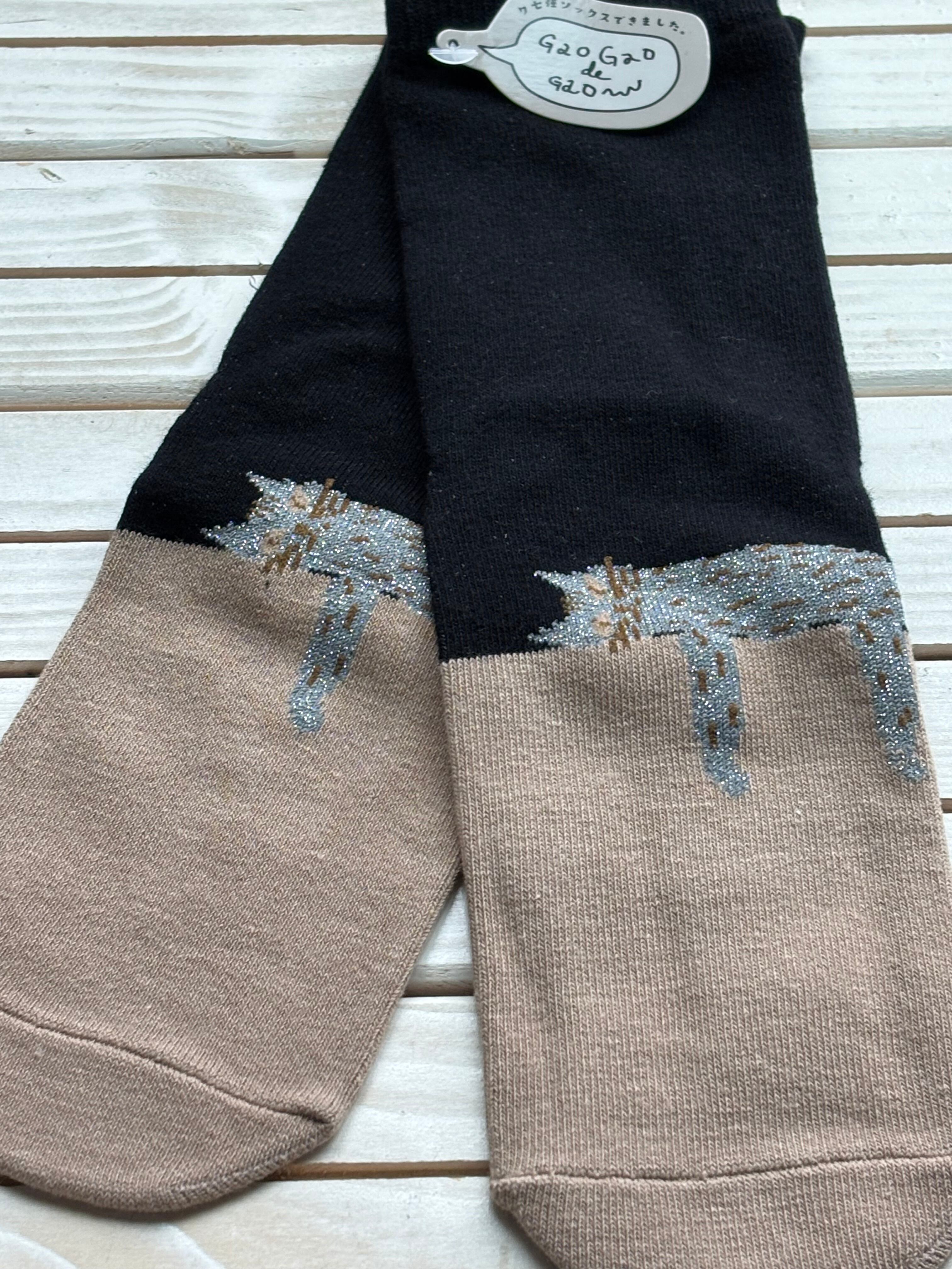 くせ強ソックス 1P ブラック×ベージュ(なまけ猫)