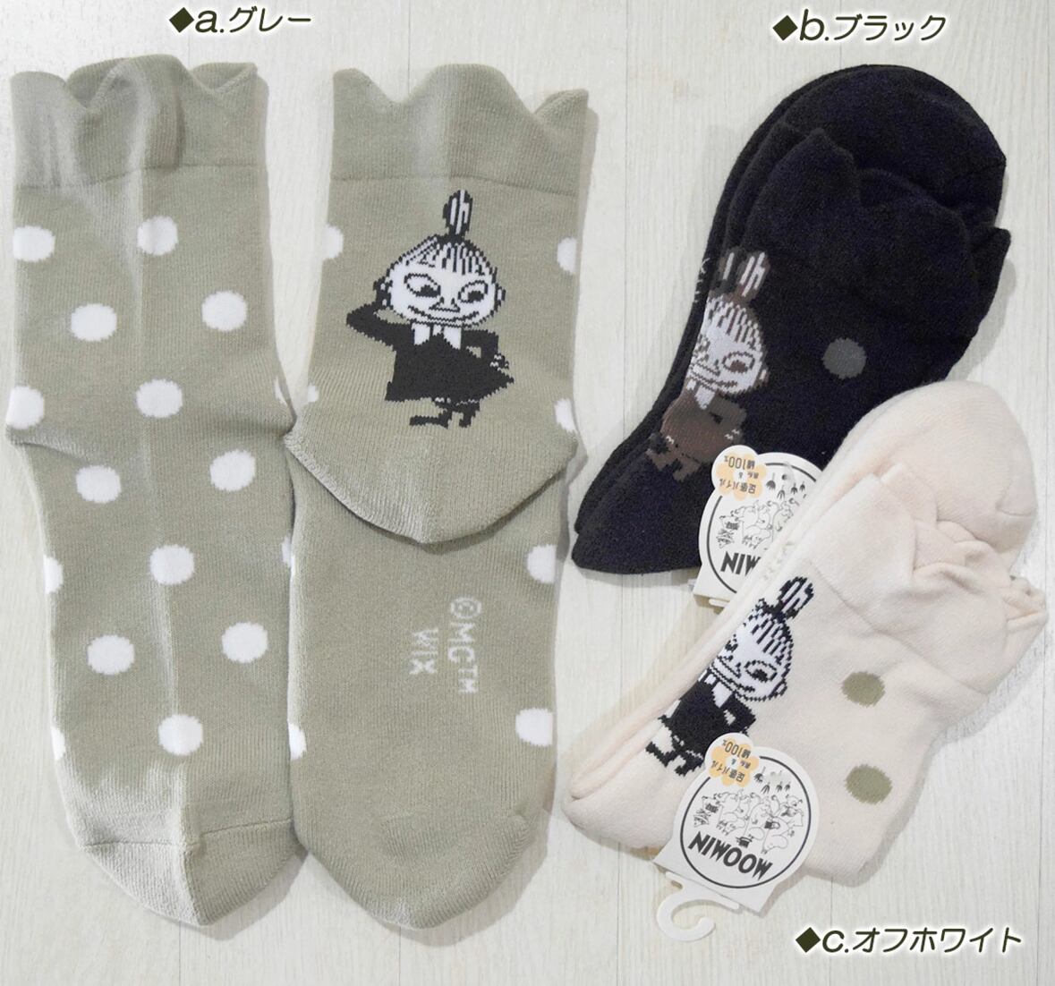 バッグのリトルミイがかわいいロークルーソックスです。履き口がかわいい。柔らかな履き心地で、締め付け感が苦手な方にもぴったりですよ。