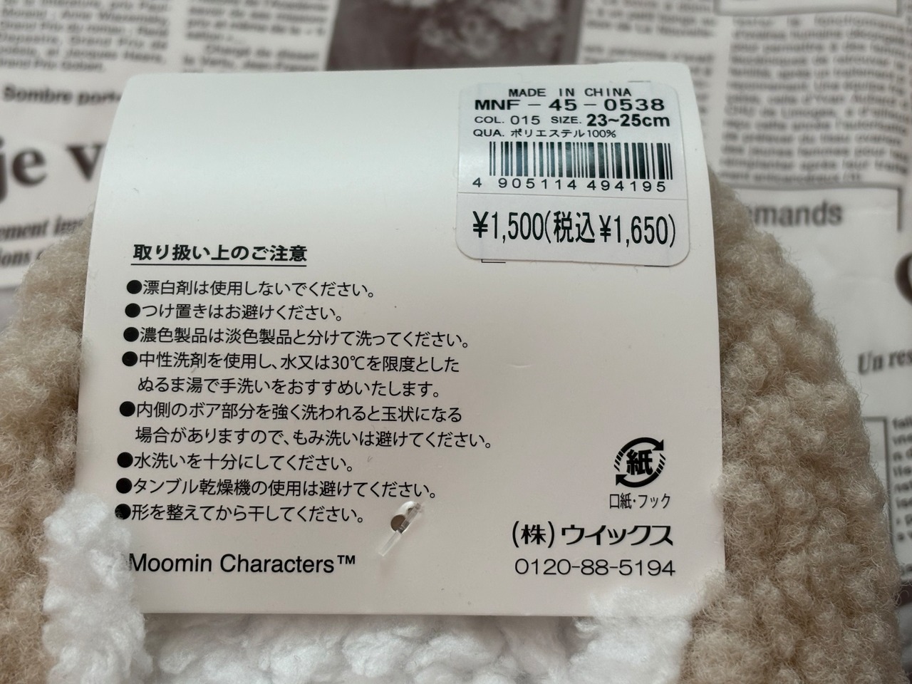 MOOMINのキャラクターのホームカバー。滑り止めつきです。内側ボア仕様で足元あったかです。