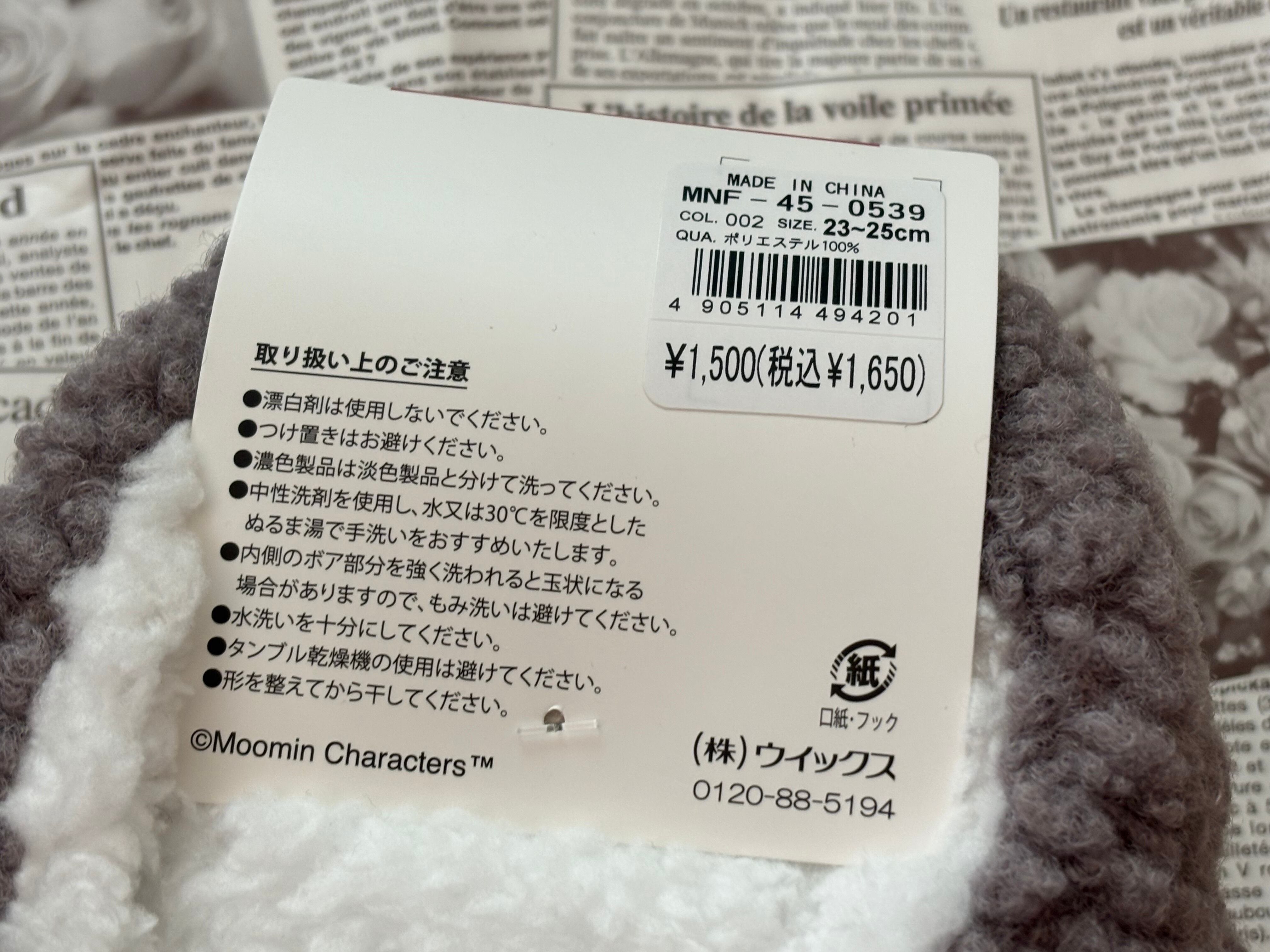 MOOMINのキャラクターのホームカバー。滑り止めつきです。内側ボア仕様で足元あったかです。