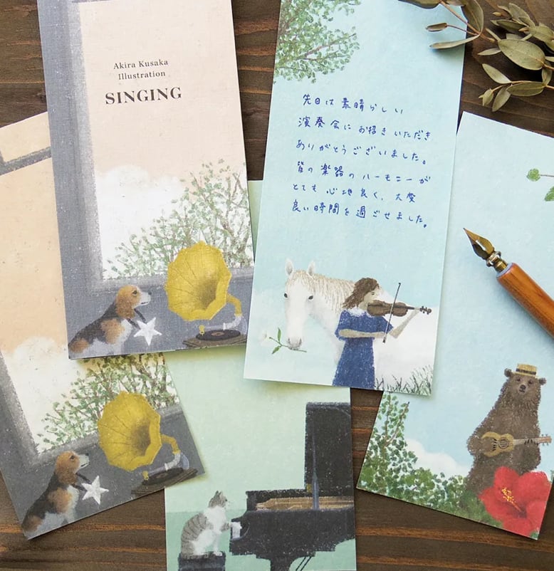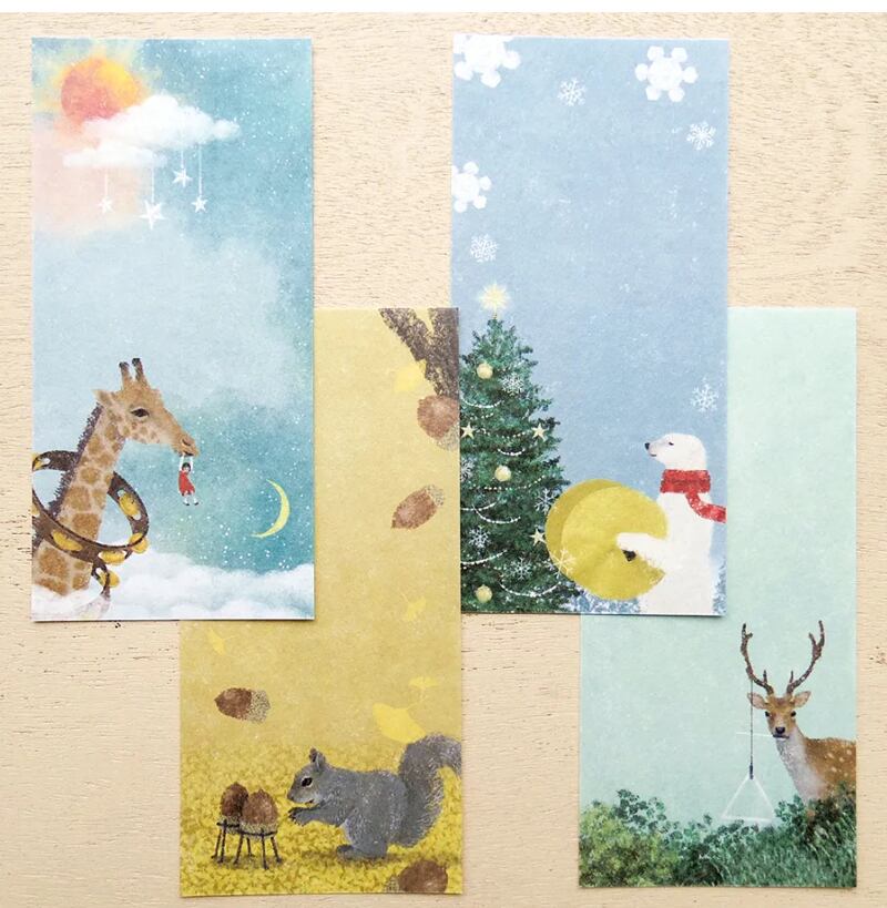 草花やどうぶつたちが描かれた、上品な華やかさのある一筆箋。 お祝いのメッセージや、お礼状を書くのにもぴったり。