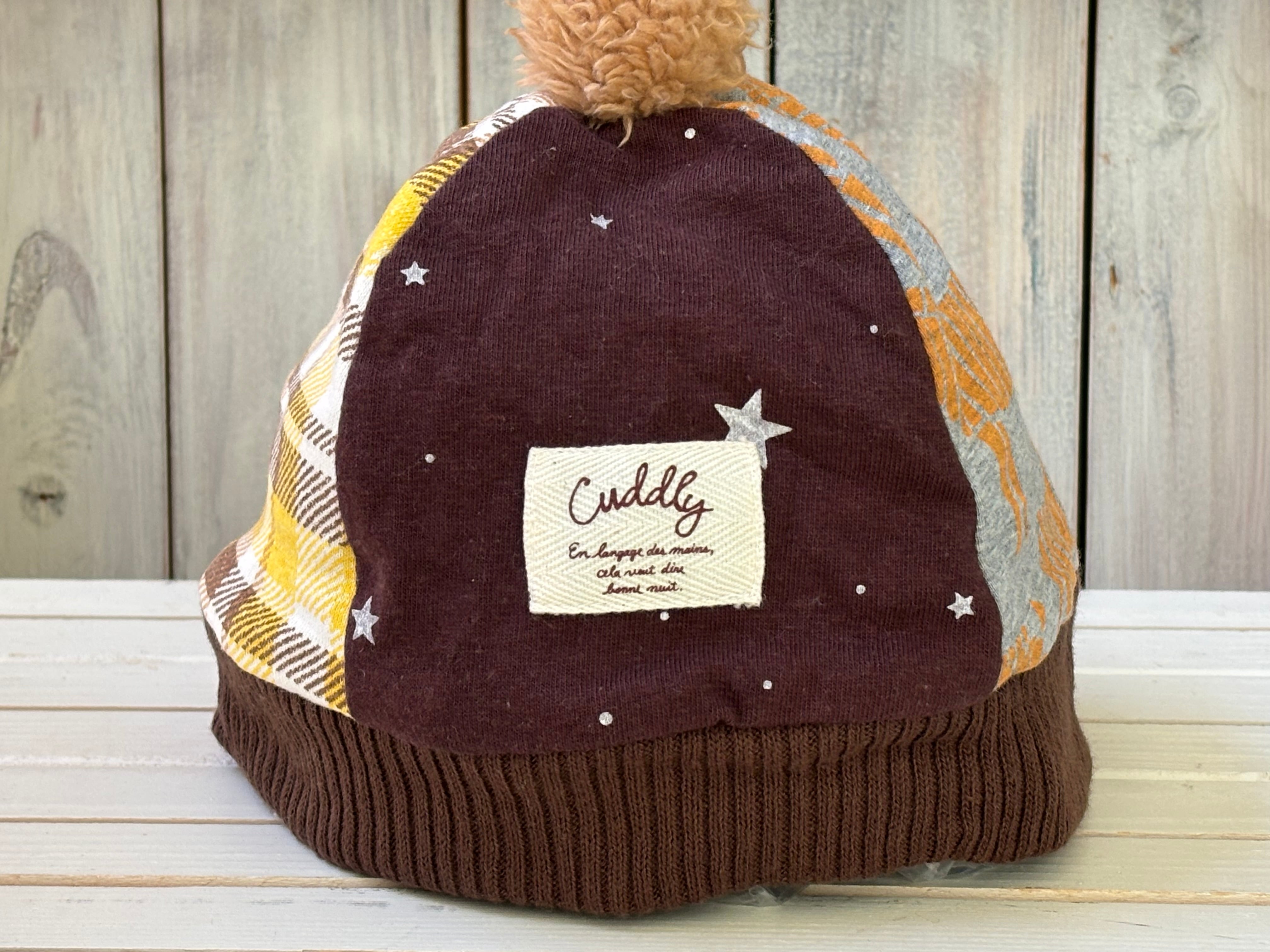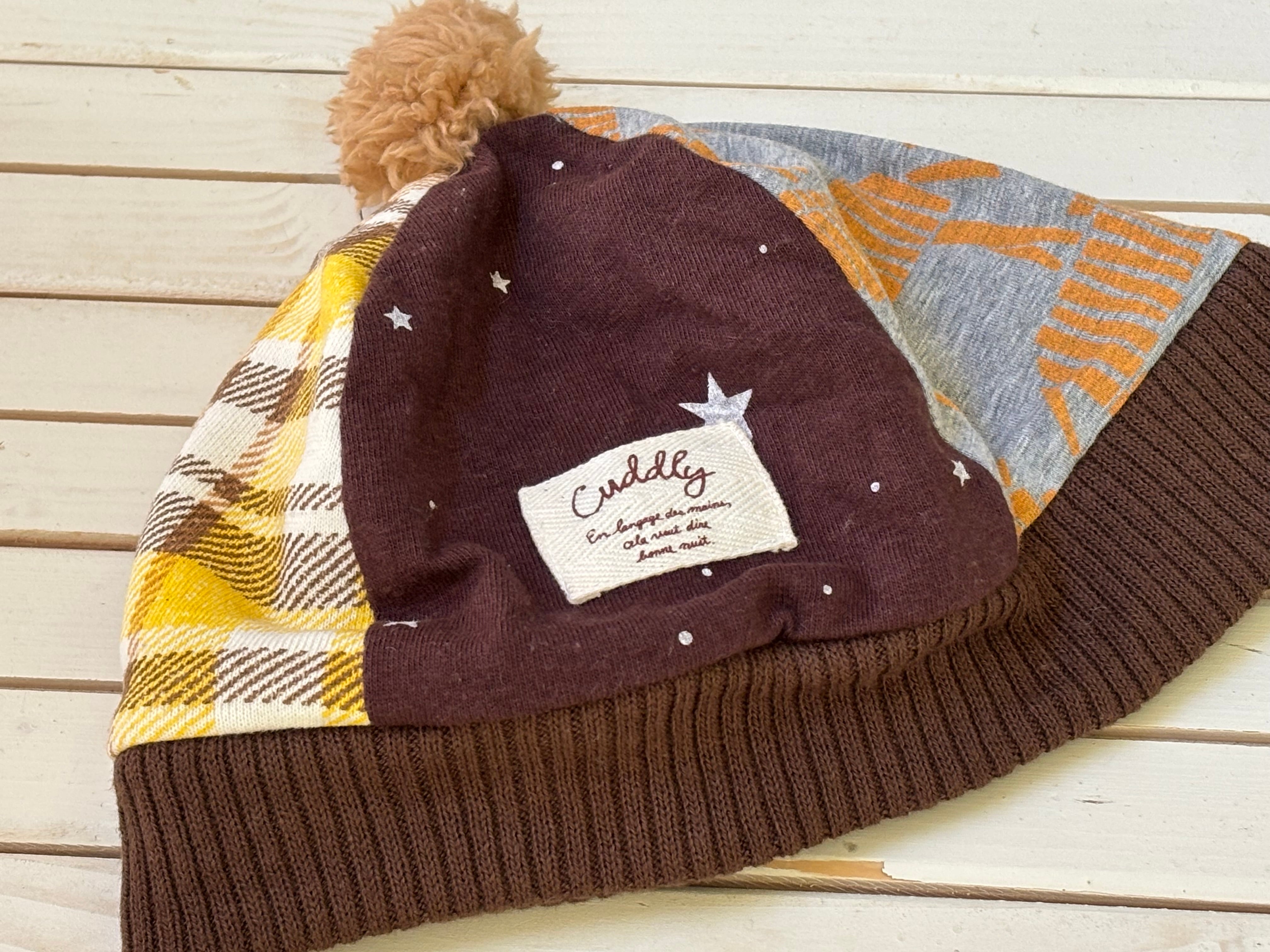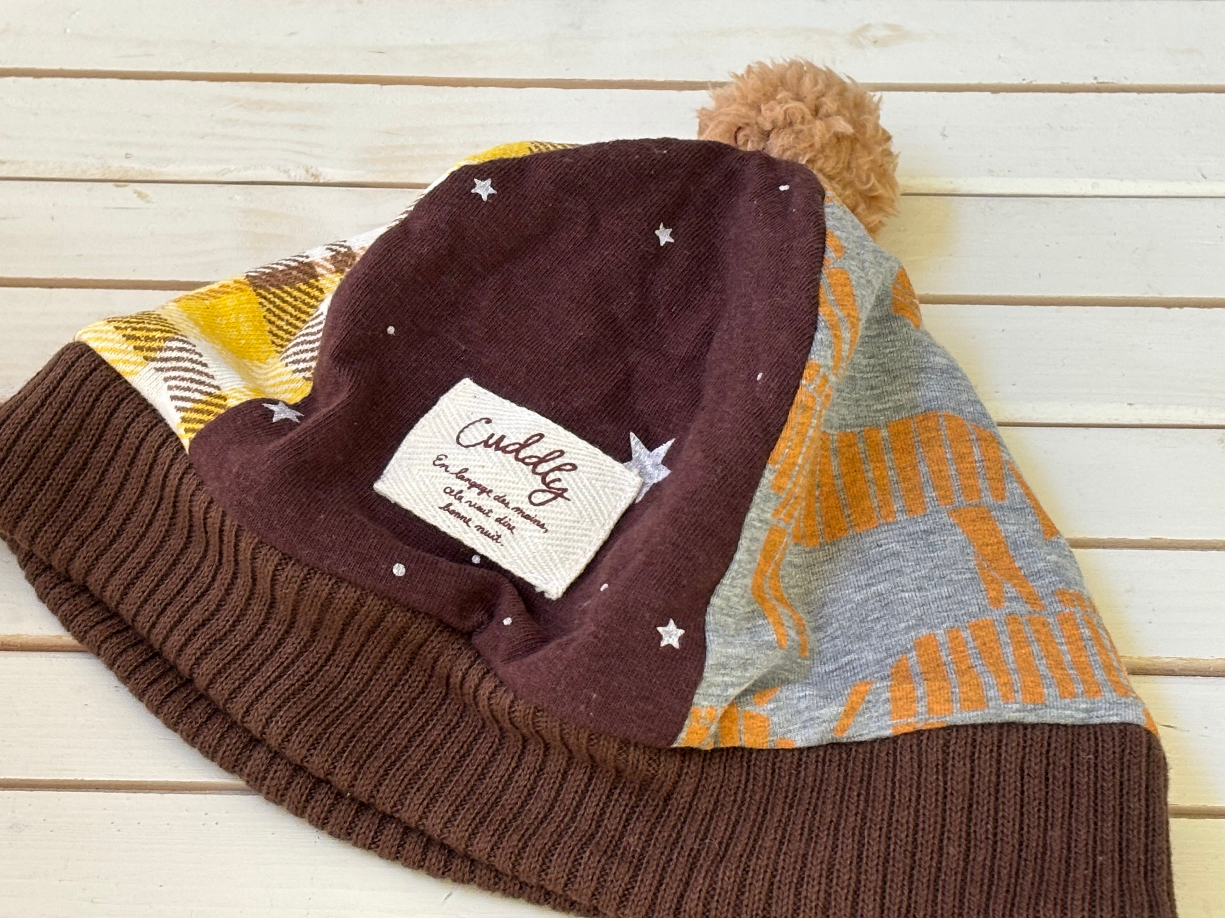 ベビーニット帽 50-54cm シマウマ×ブラウンイエロー×迷彩 ハンドメイド agnelet