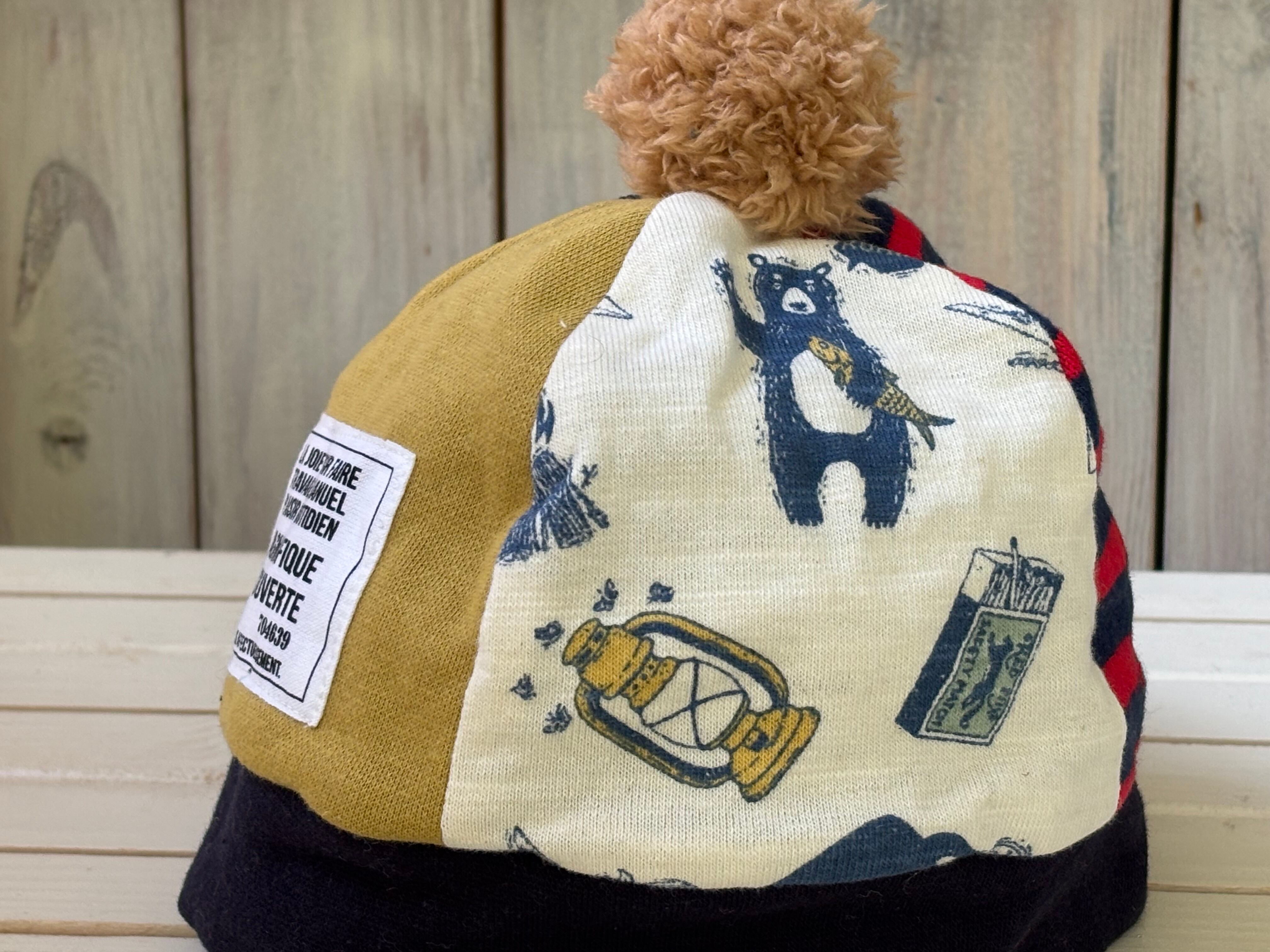 ベビーニット帽 46-50cmクマキャンプ×迷彩 ハンドメイド agnelet