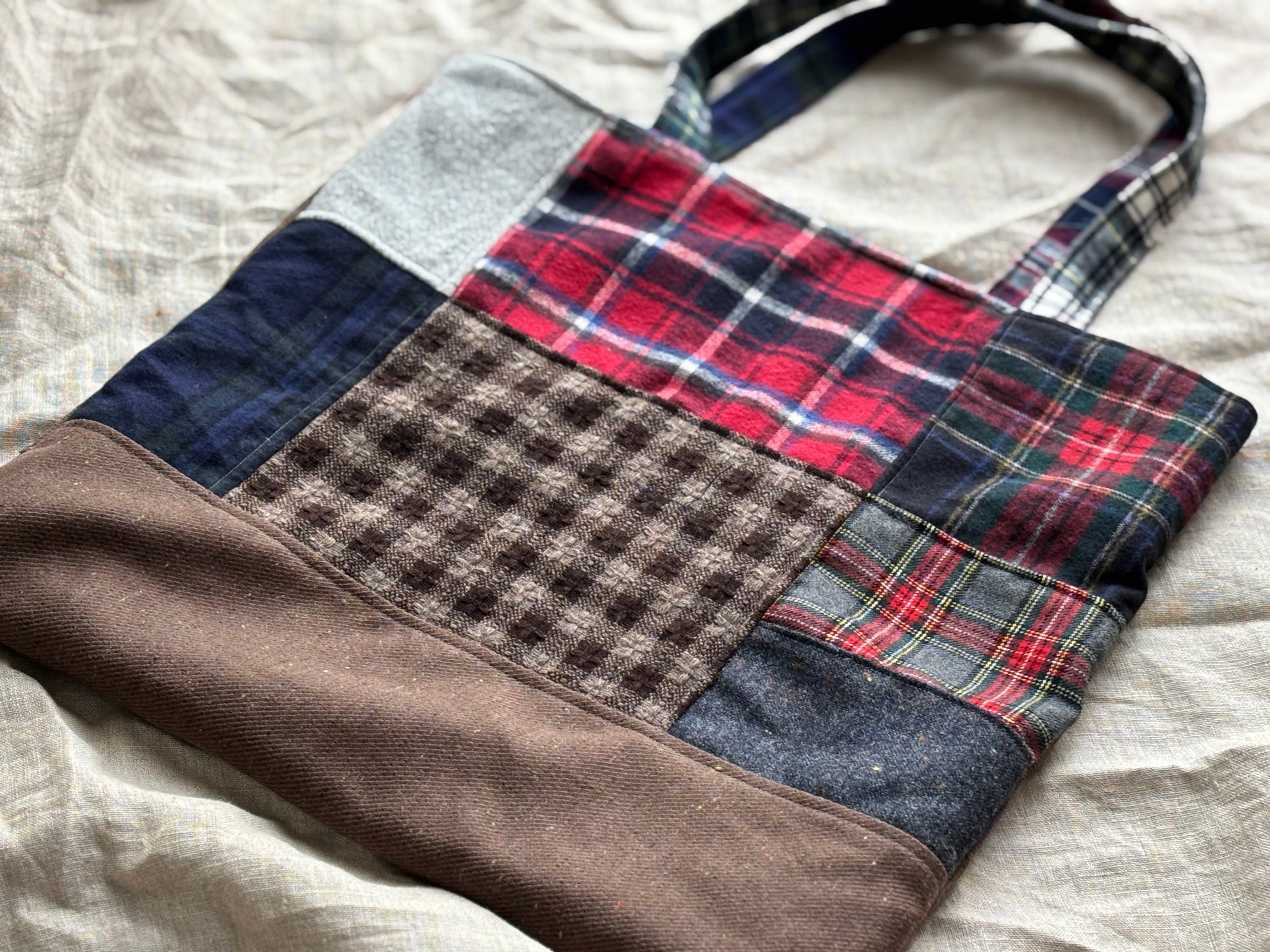 秋冬パッチバッグ③赤レッド系 肩掛けトートバッグ ハンドメイドバッグ