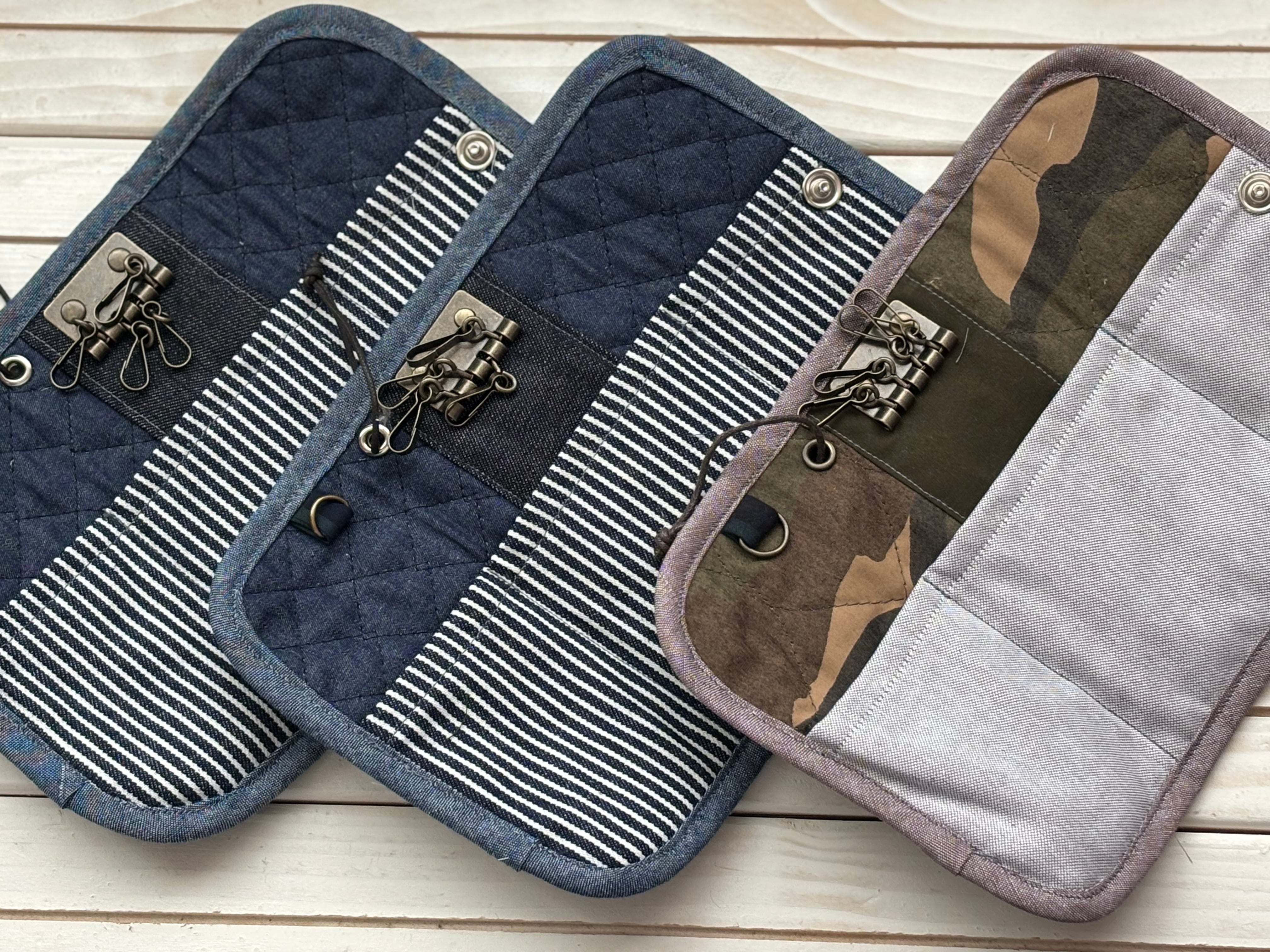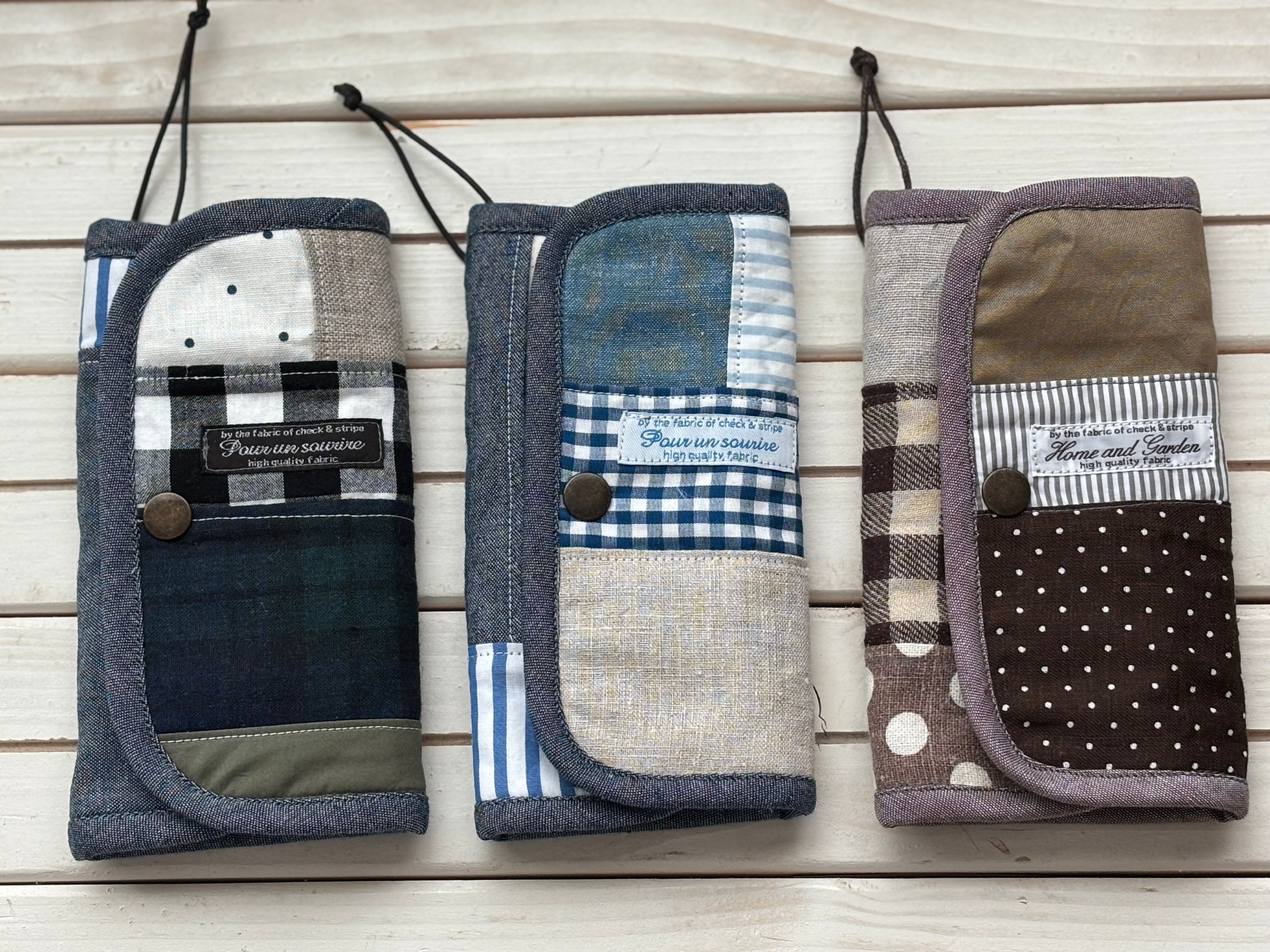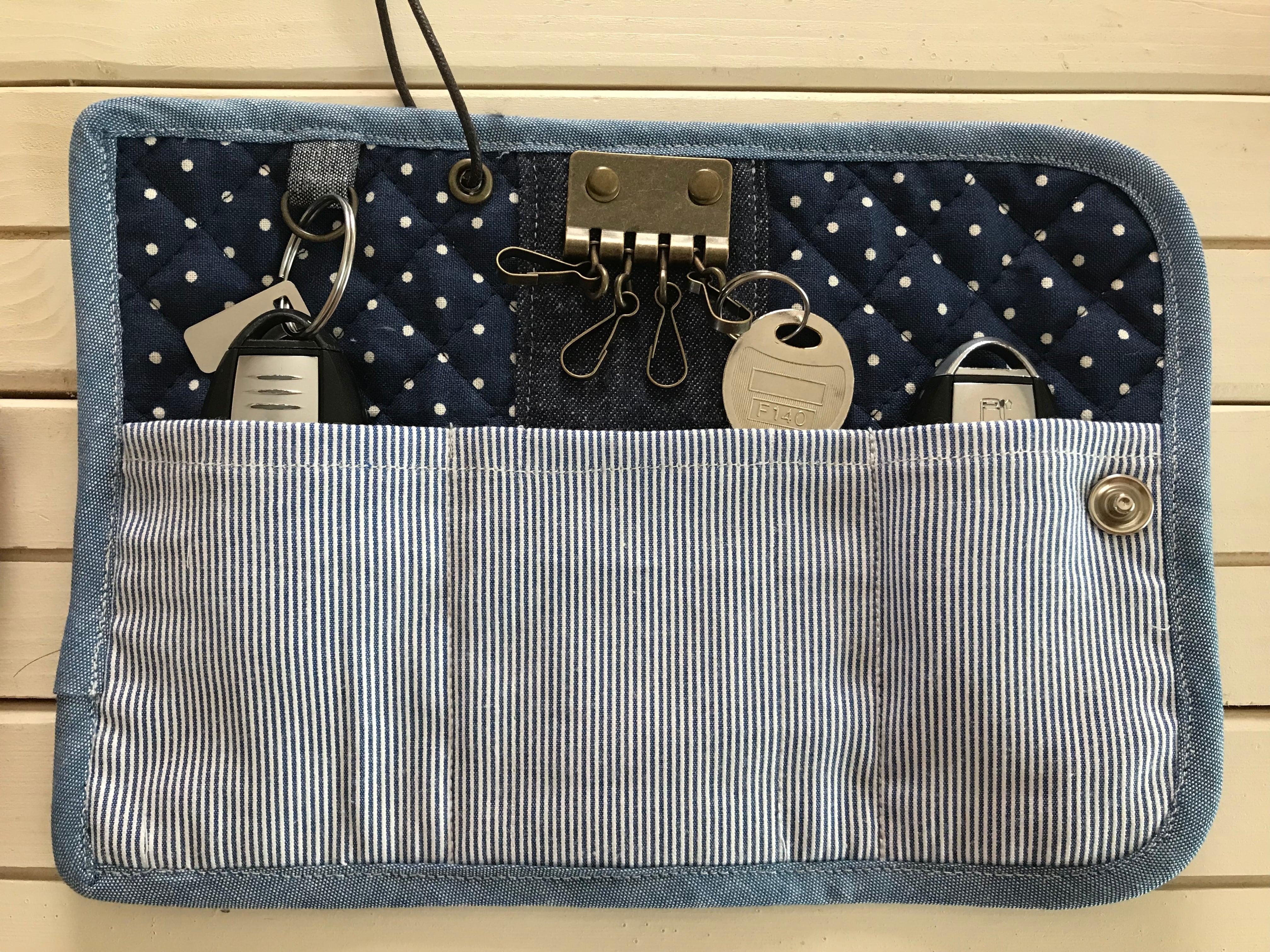 キーケース②4連キーケース リネンデニムチェックストライプ パッチワーク ドット ストライプ ボーダー キルティング ハンドメイド agnelet