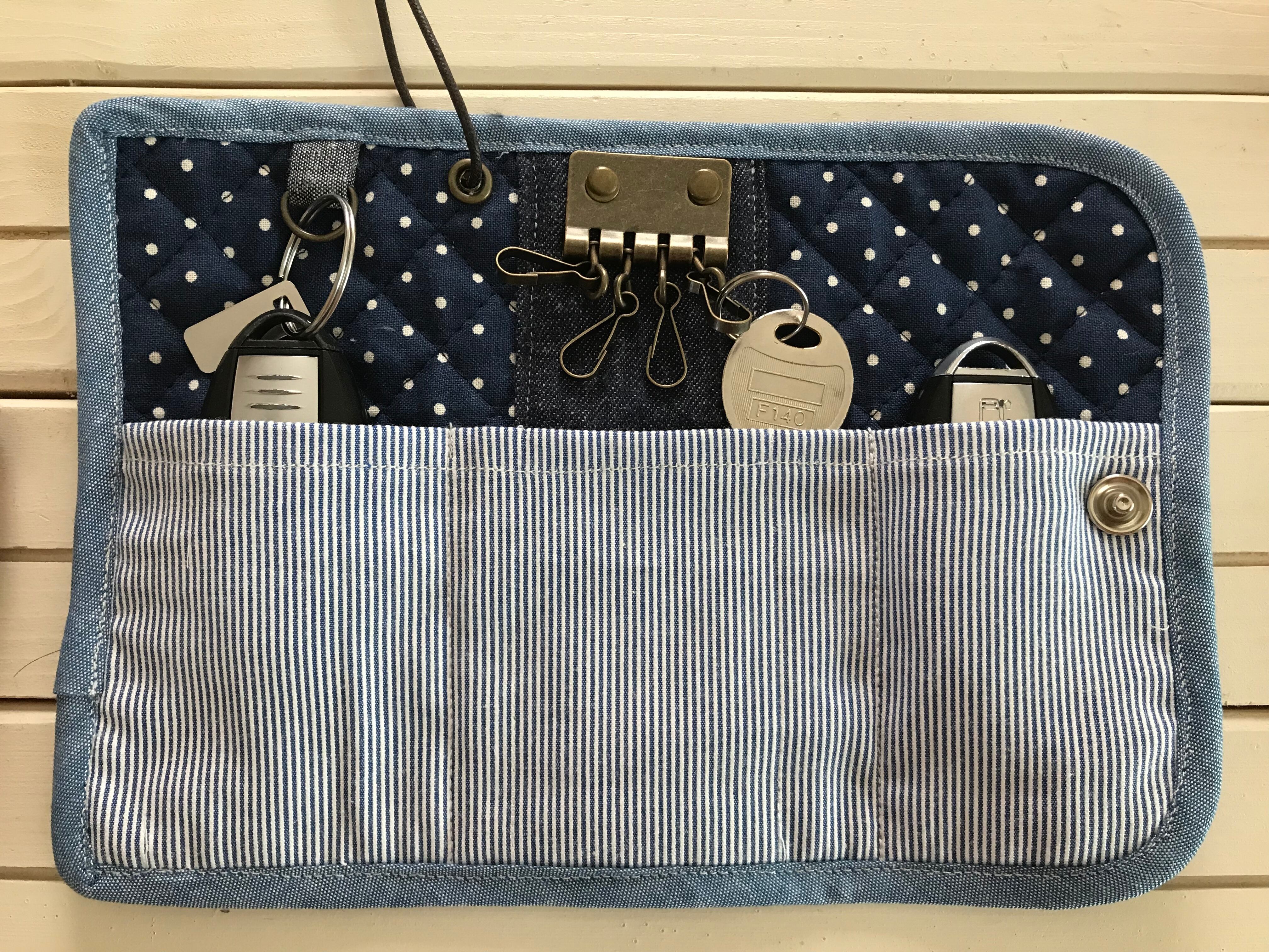キーケース④4連キーケース リネンデニムチェックストライプ パッチワーク ドット ストライプ ボーダー キルティング ハンドメイド agnelet