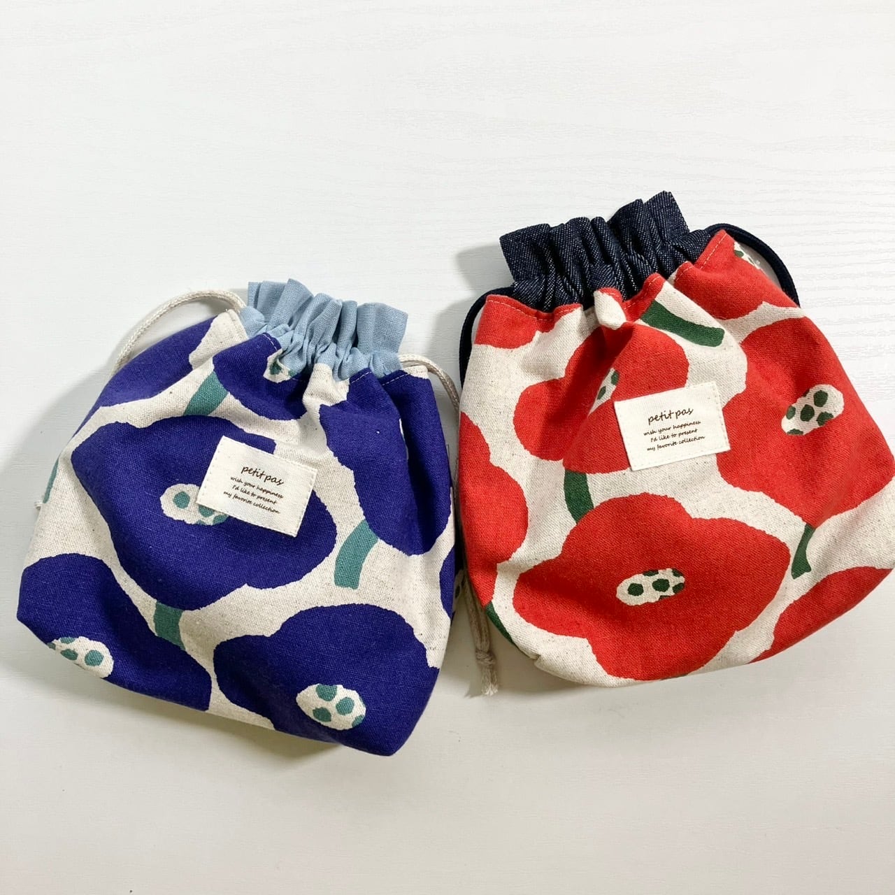 北欧風のアネモネが可愛い花柄の巾着袋です。
