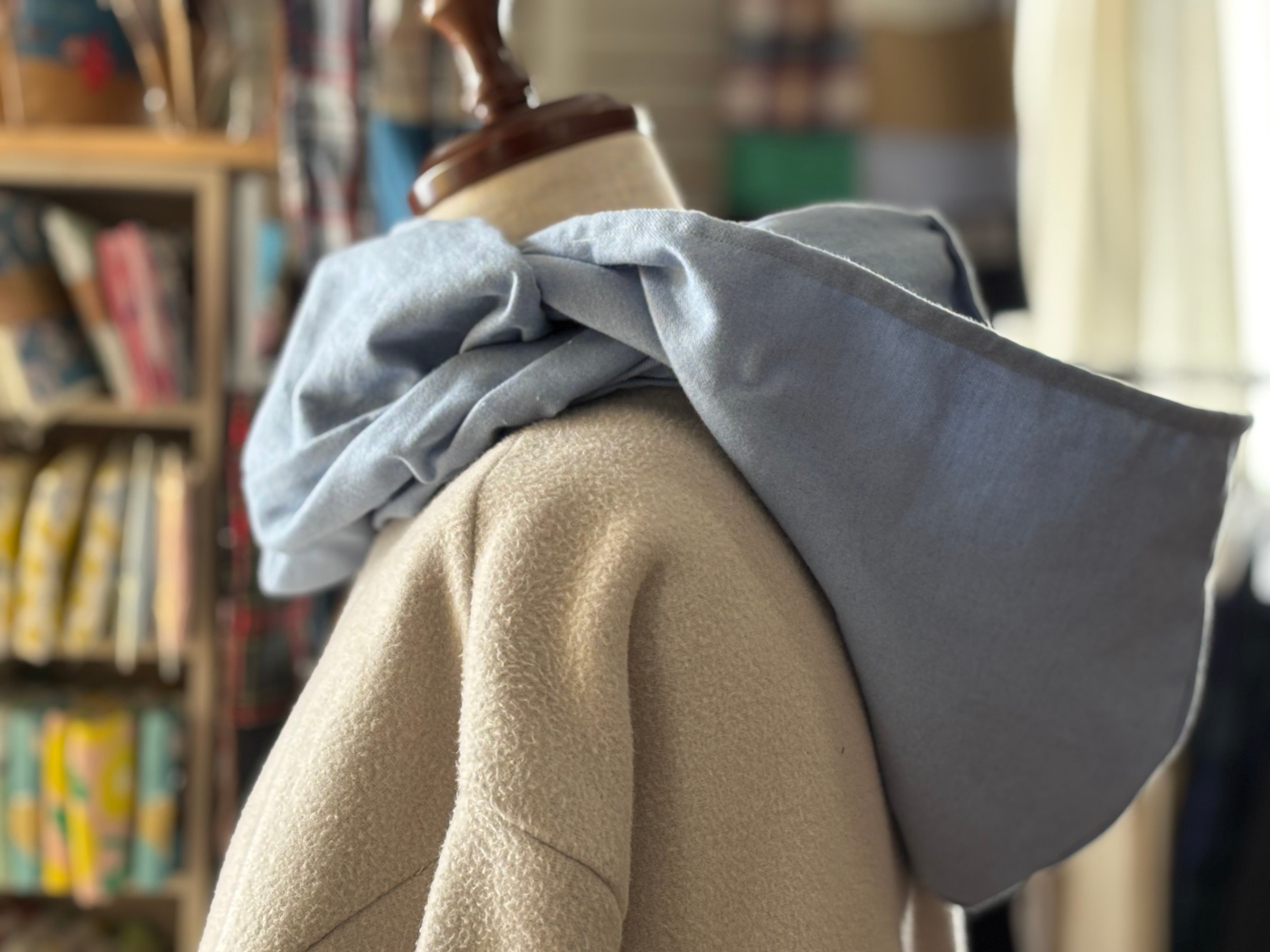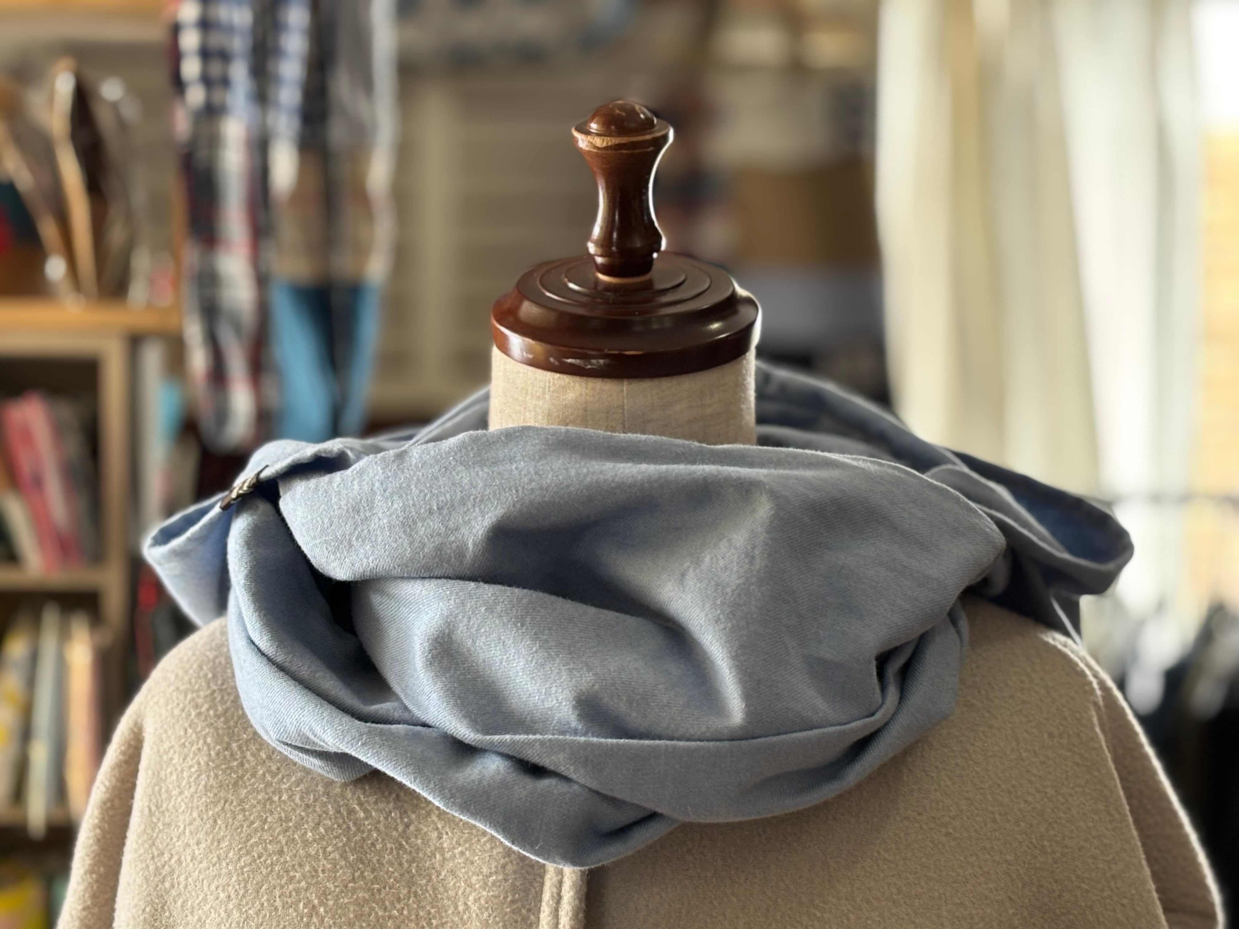 スヌード部分(平置き)縦約21cm・横約150cm・ 145グラム/コットンウール ツイル織り 無地/製作:agnelet