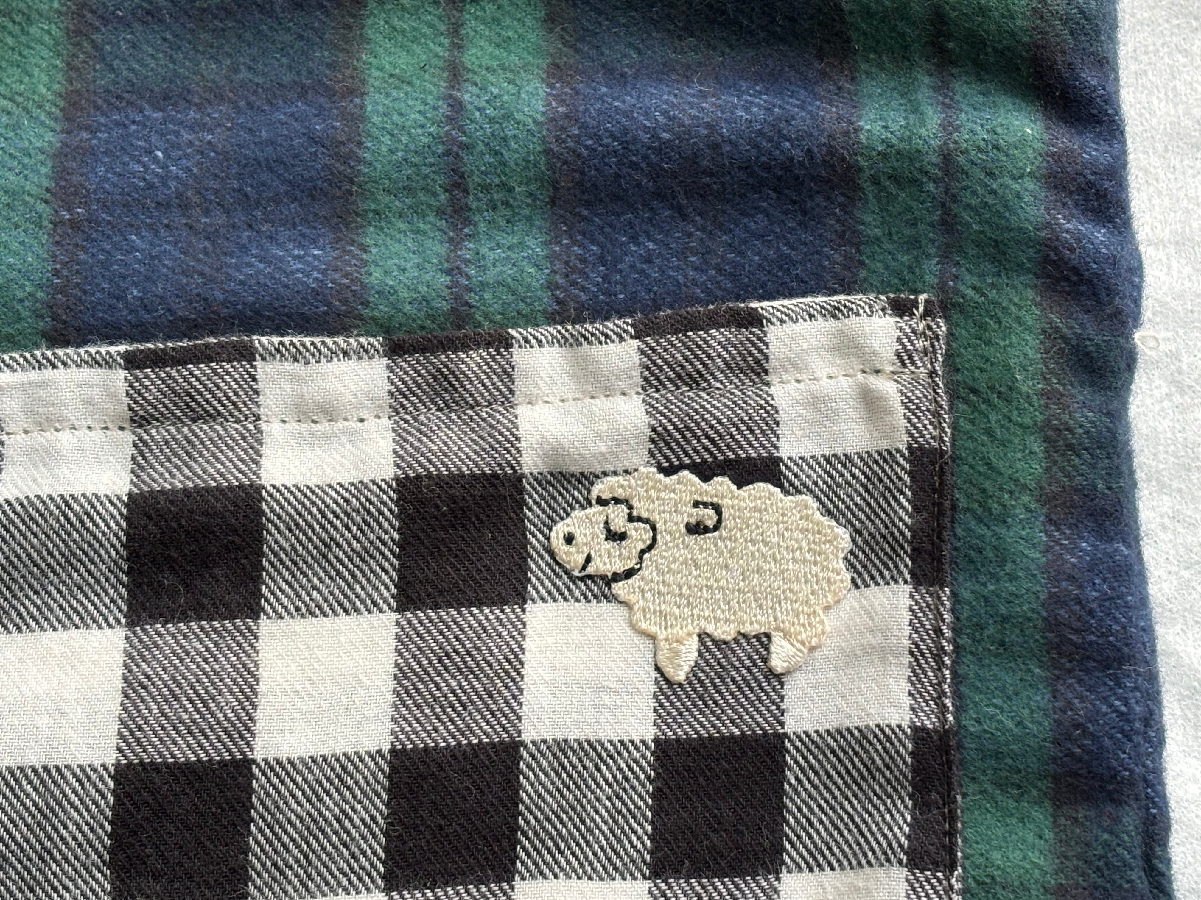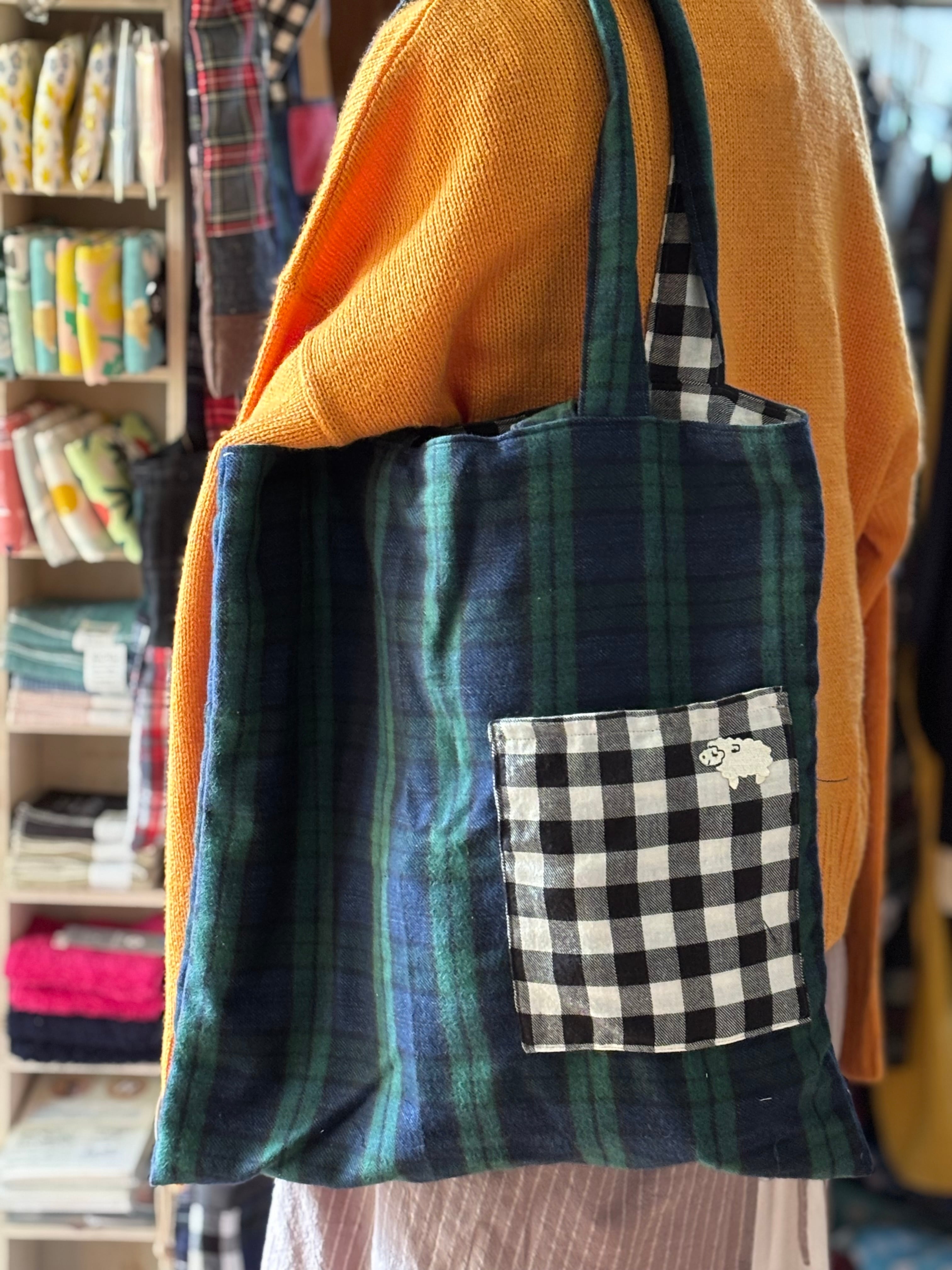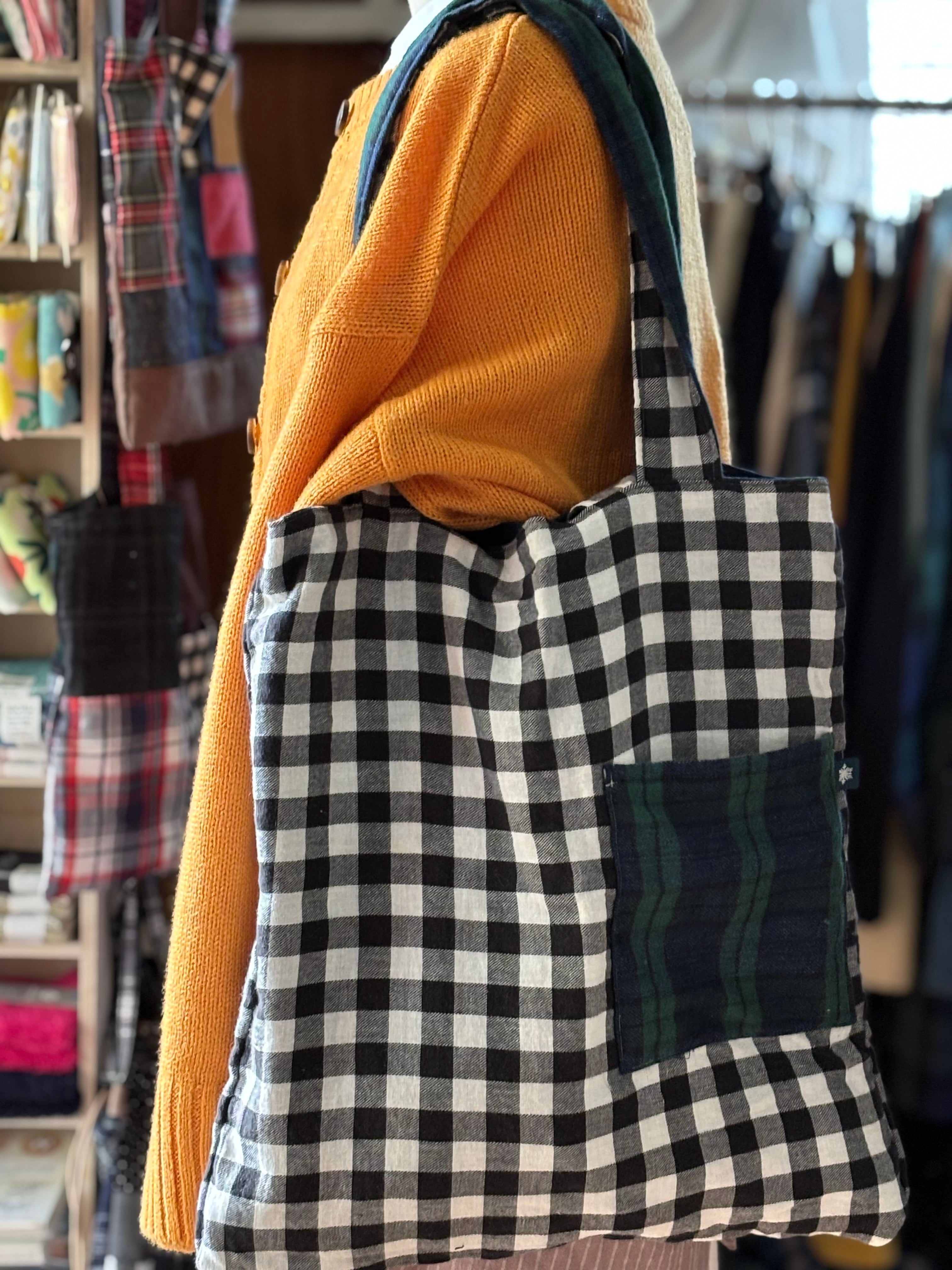 リバーシブルバッグ ブラックウォッチ×白黒チェック 2wayバッグ 起毛チェック ブロックチェック バッグ ハンドメイドバッグ agnelet