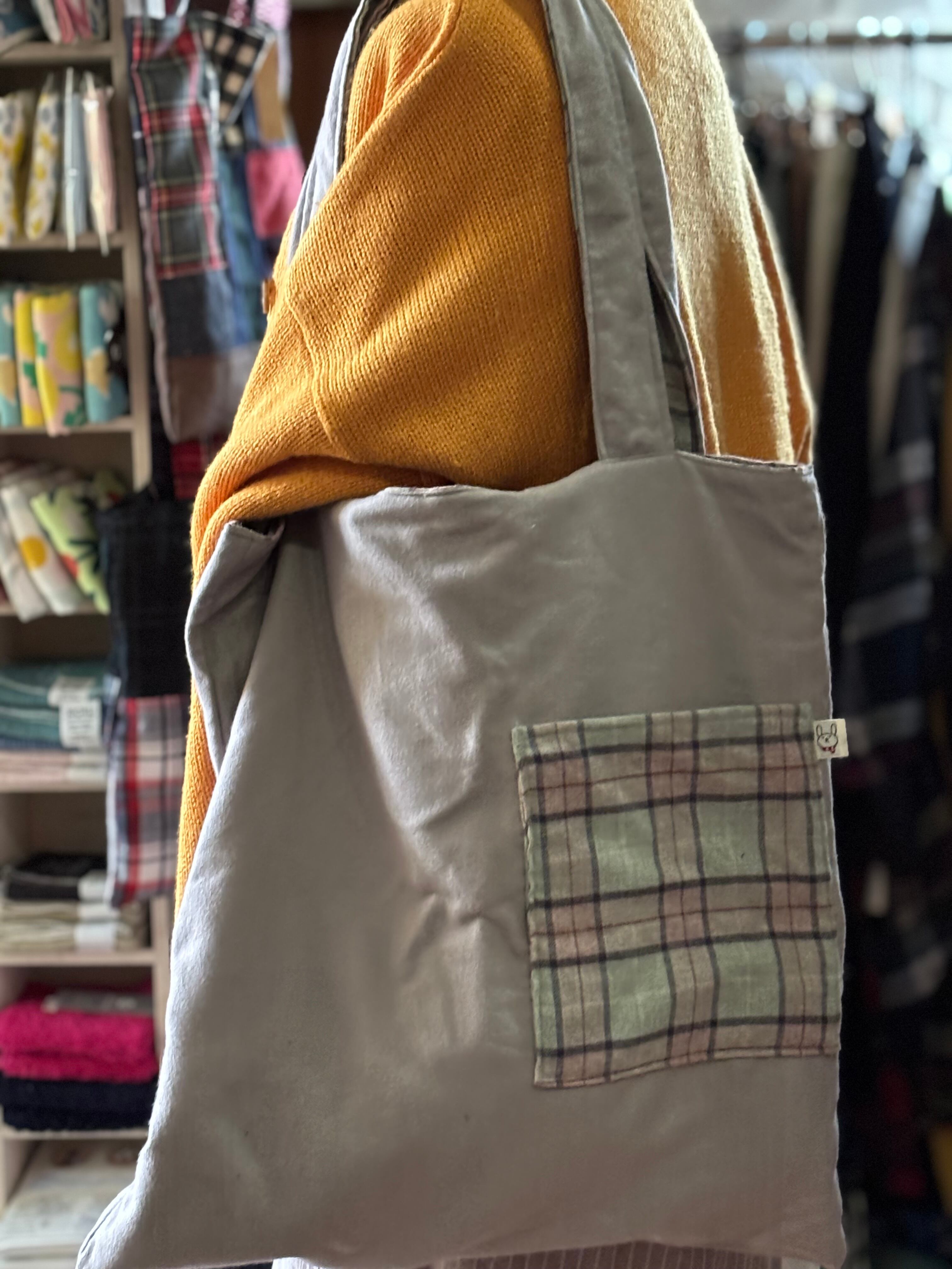 約h42×w40cm 持ち手:肩掛け約55cm 手持ち約29cm/起毛コットン /製作:agnelet