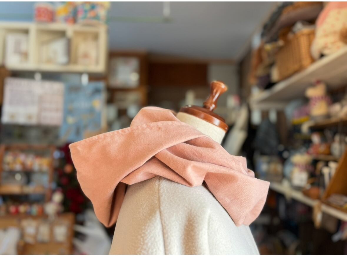 スヌード部分(平置き)縦約21cm・横約150cm・ 114グラム/コットンウール 無地/製作:agnelet