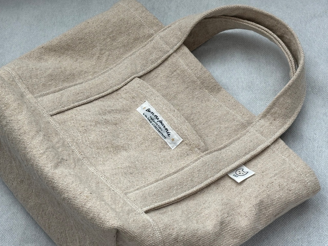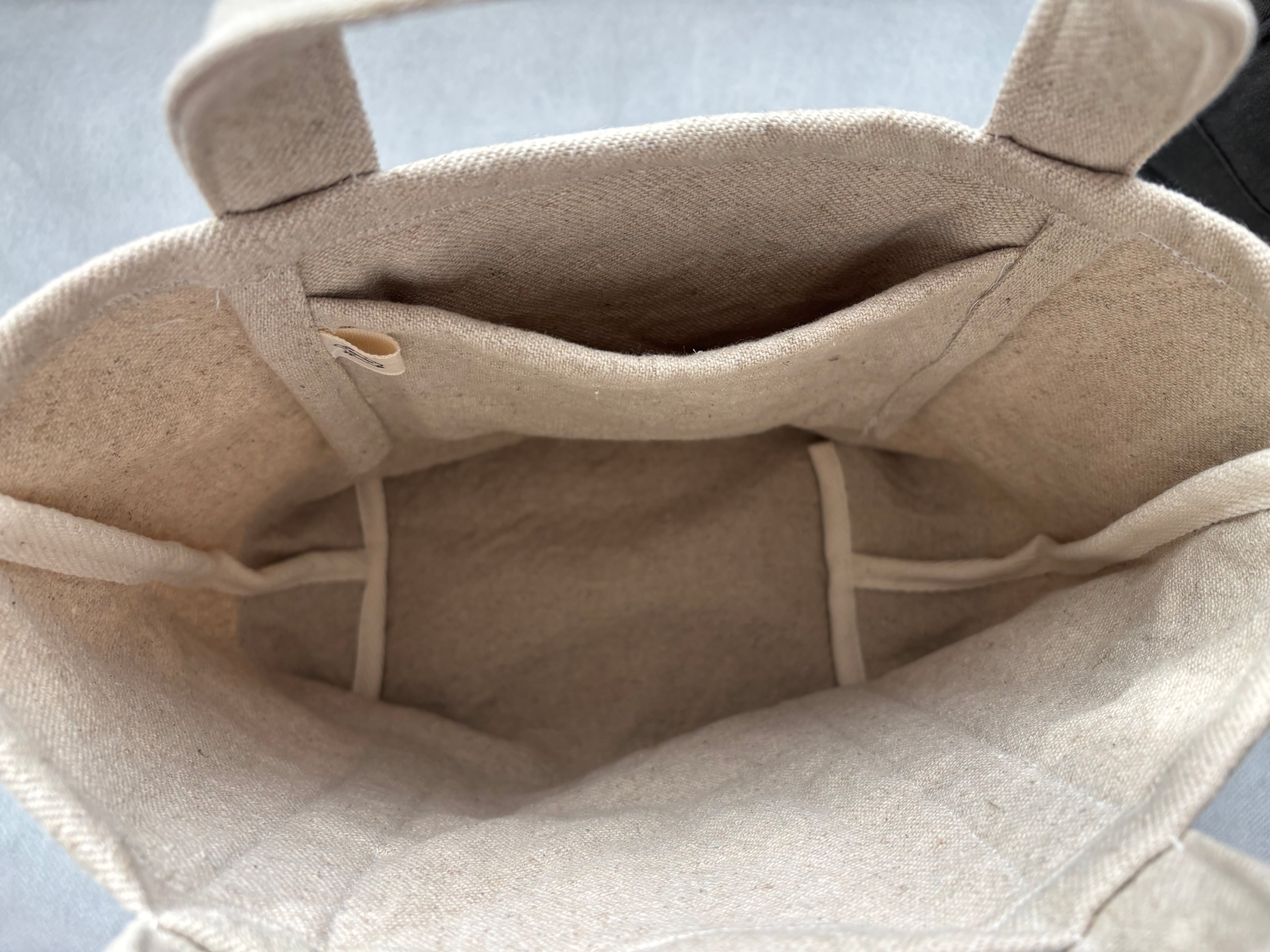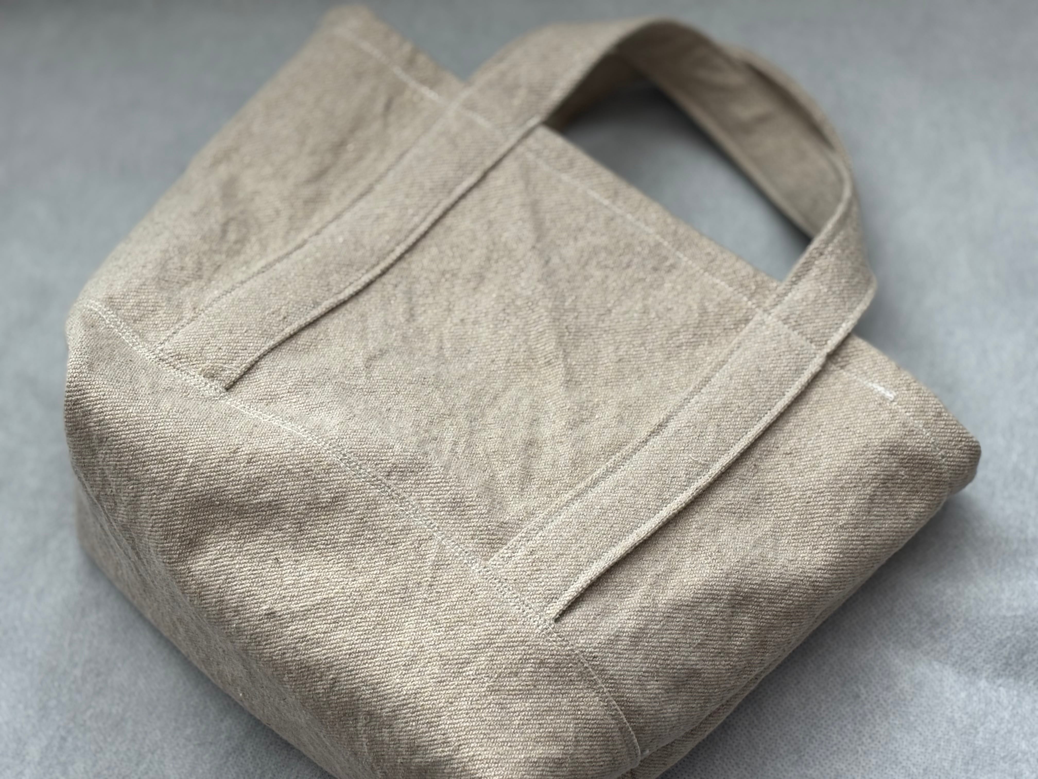 約w30×h20×d10cm。持ち手約29cm/ハーフリネンツイル.内ポケット付/製作:agnelet