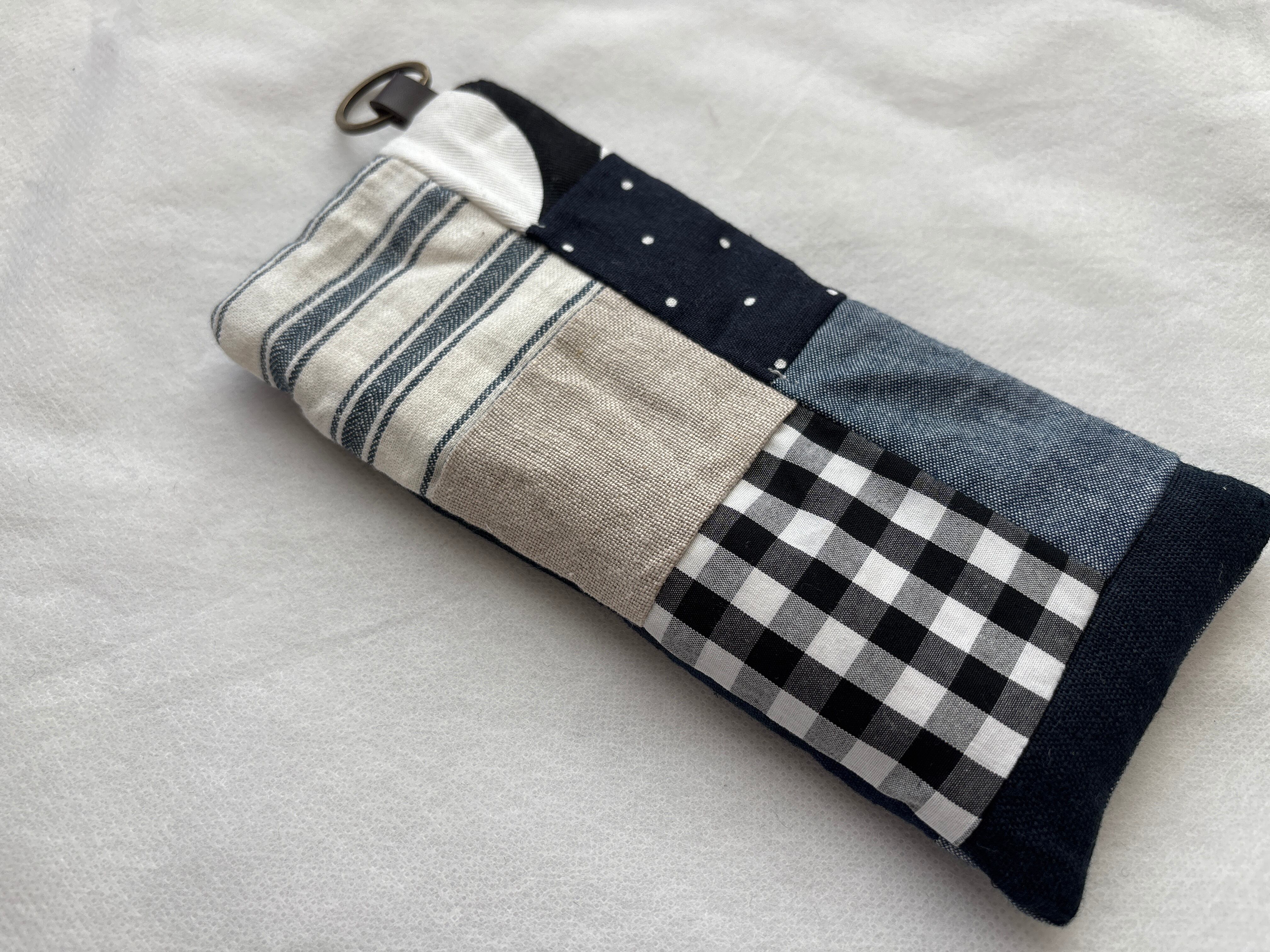 メガネケース③ ピンドット ネイビーブラックウォッチチェック リネン パッチワークめがね眼鏡 agnelet
