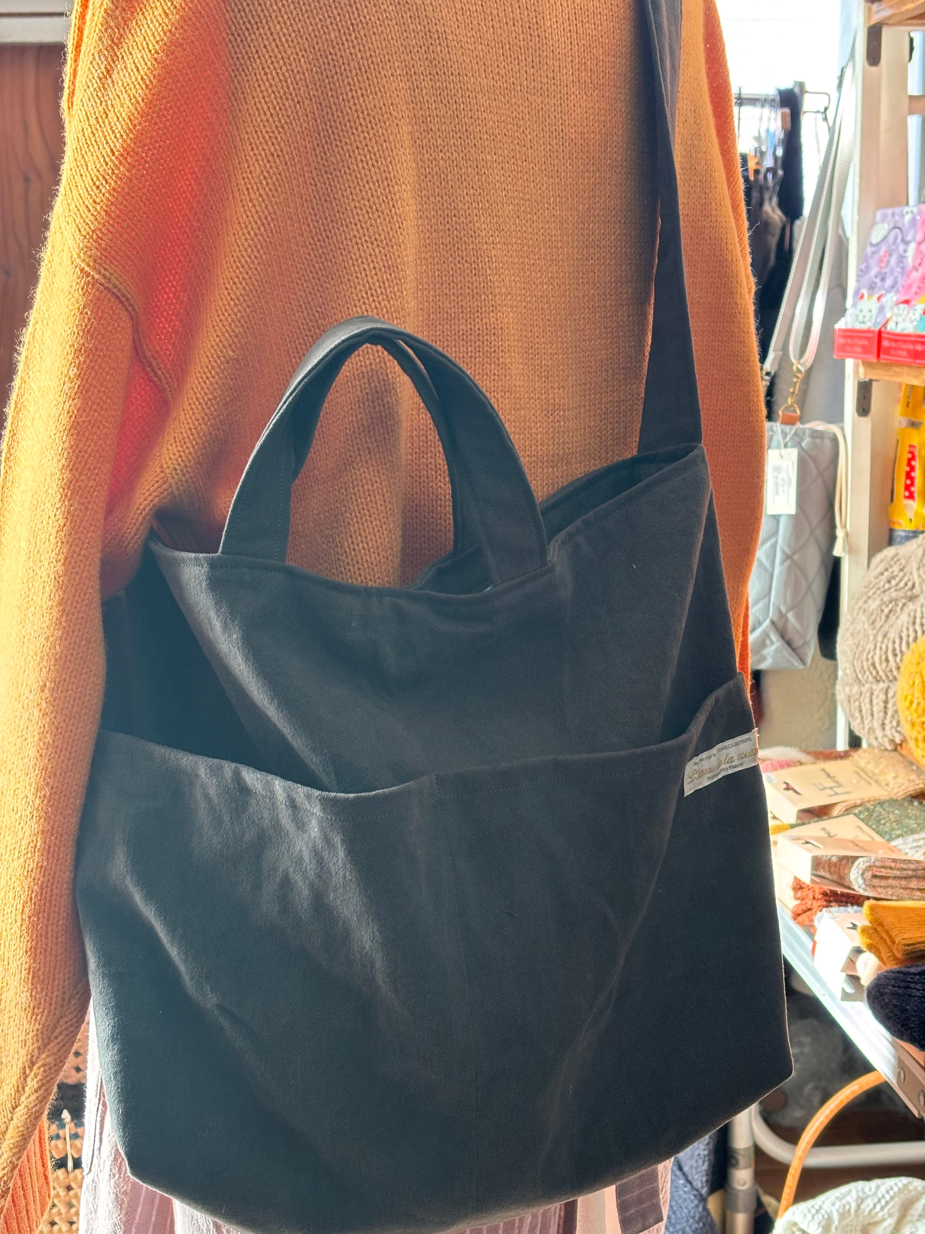 約w43×h28×d15cm。持ち手約25cm ショルダー約86cm/微起毛コットン.綿シャーリング.外内ポケット付/製作:agnelet