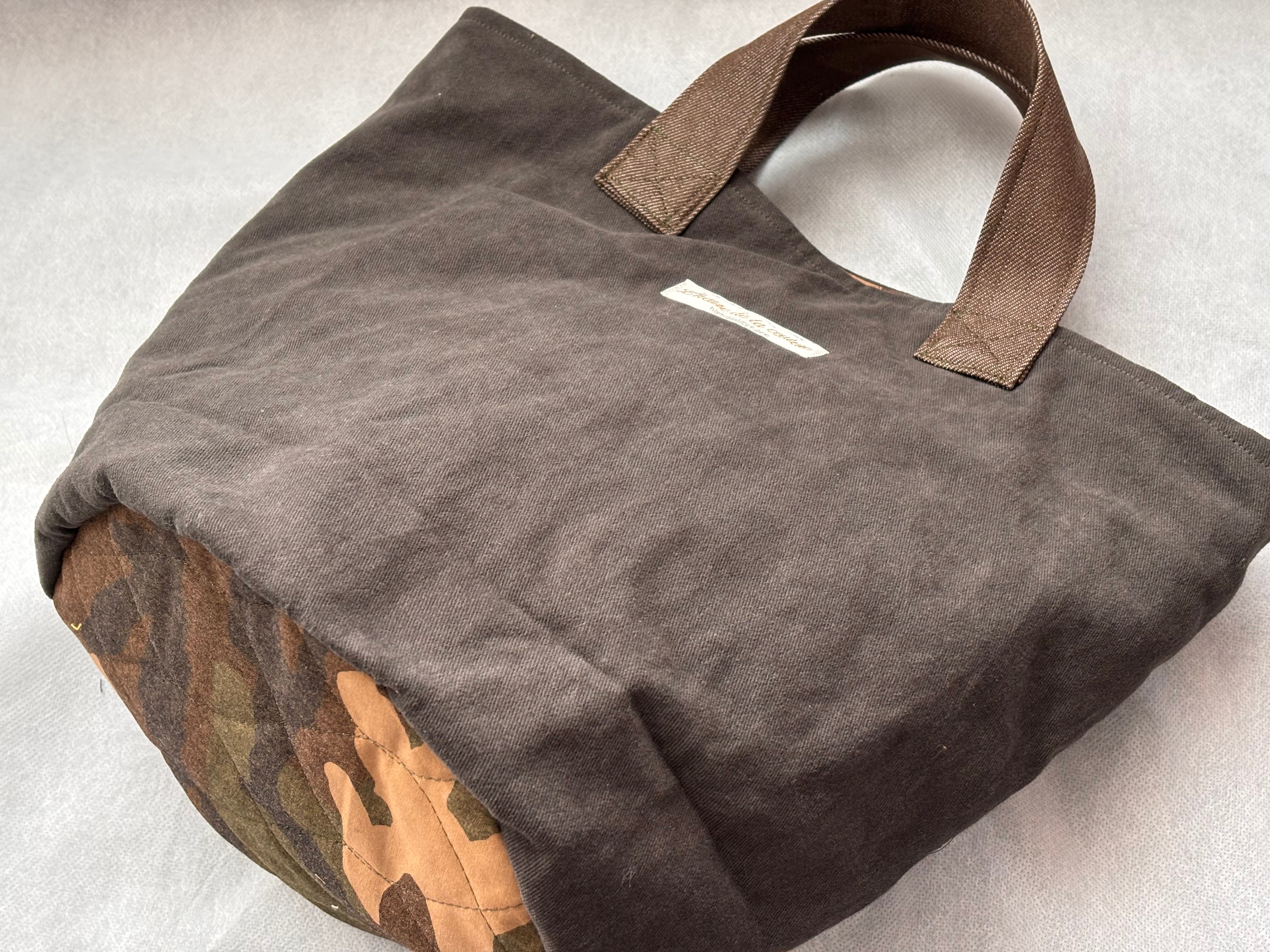 約w30×h35×d20cm。持ち手約25cm/微起毛コットン.キルティング.外内ポケット付/製作:agnelet