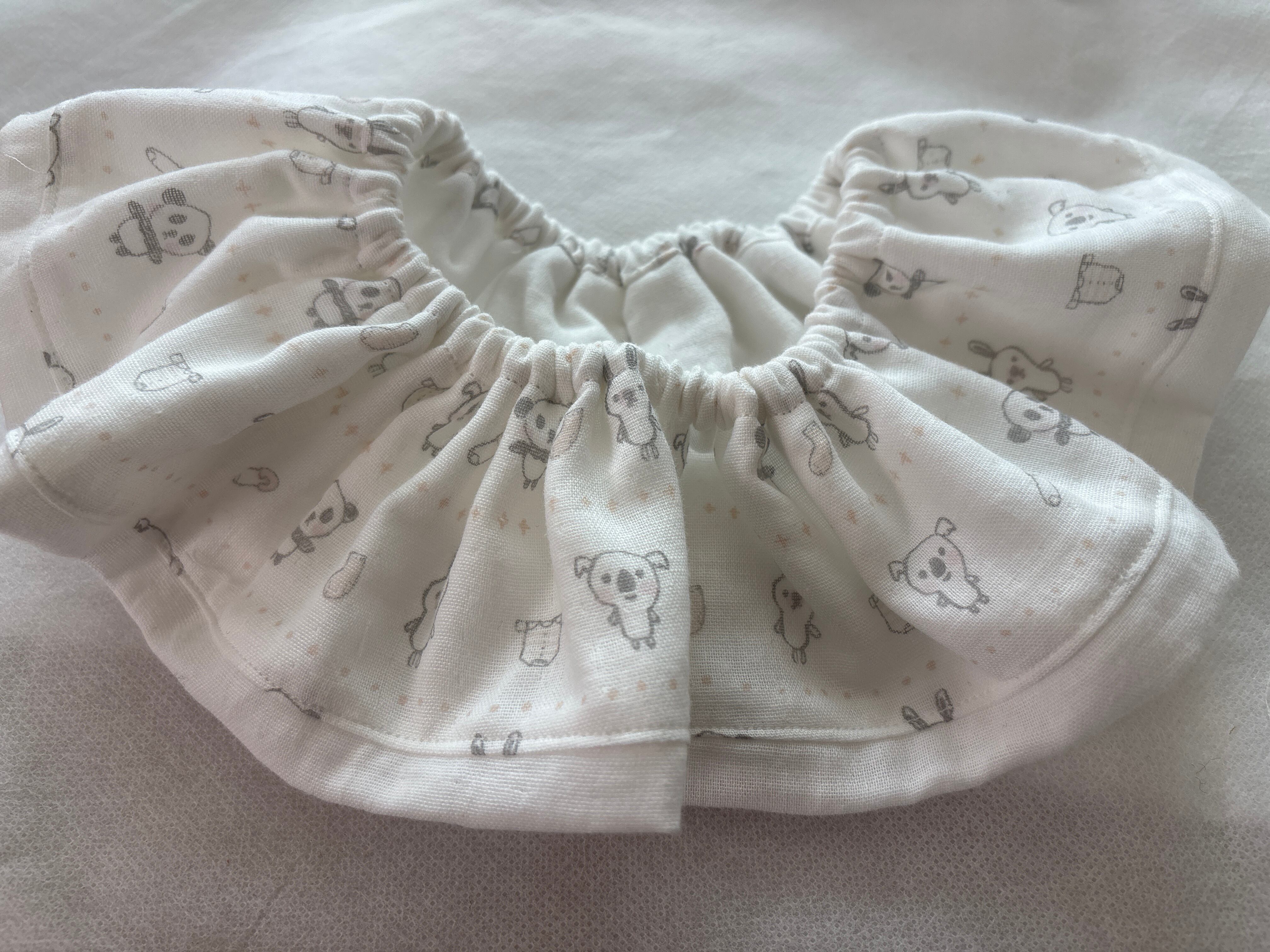 フリルスタイ パンダとうさぎ ホワイト白 ダブルガーゼ ハンドメイド ベビーギフト agnelet