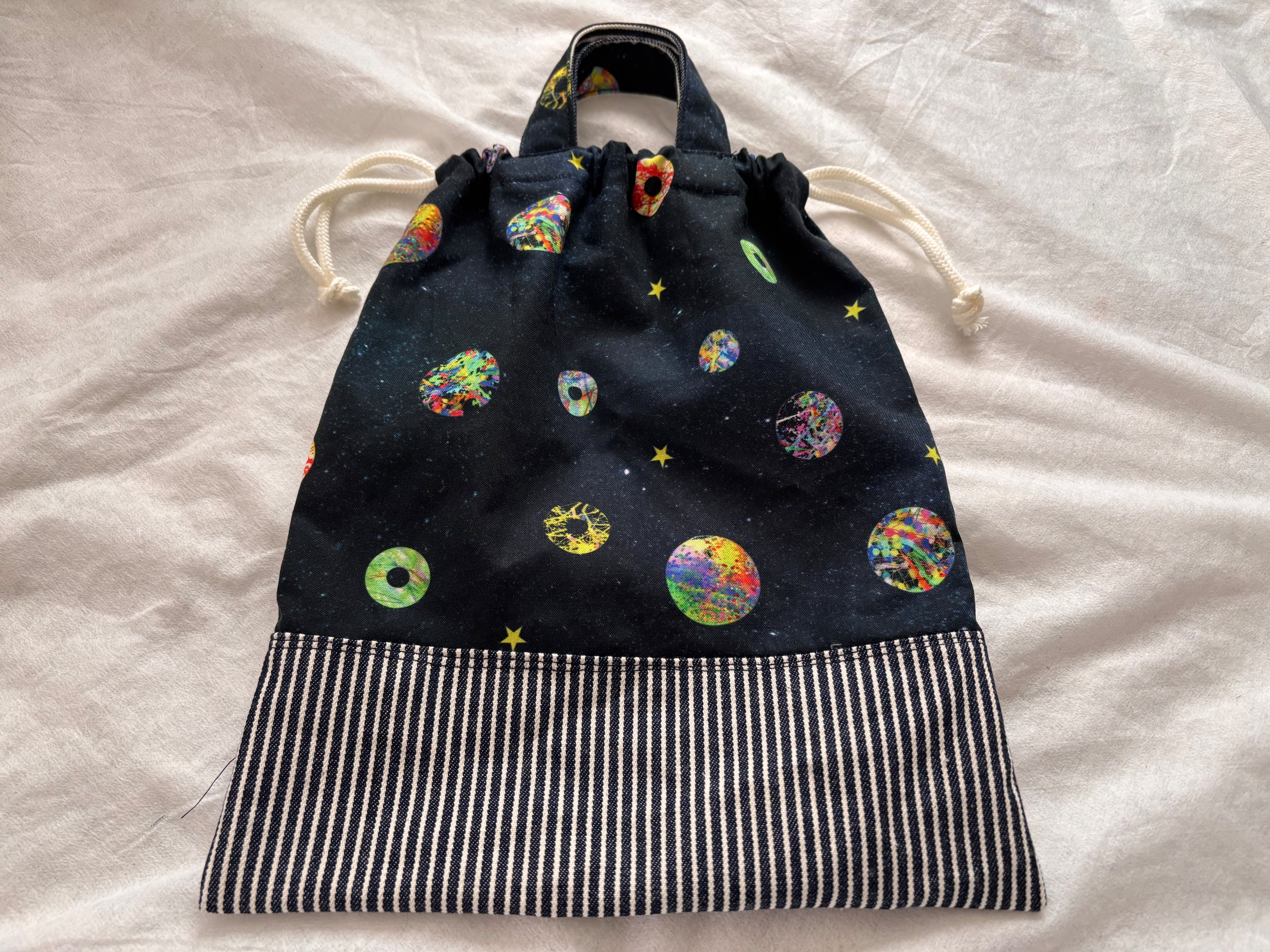 s00u design オリジナルファブリック 持ち手付き巾着 お道具袋 エプロン入れ ハンドメイド