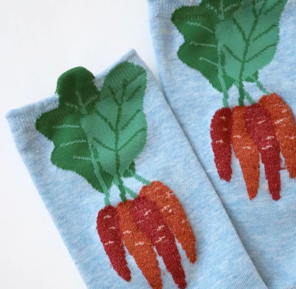 にんじんの葉っぱはあえてはみ出すデザインにさりげない遊び心をプラスした靴下。