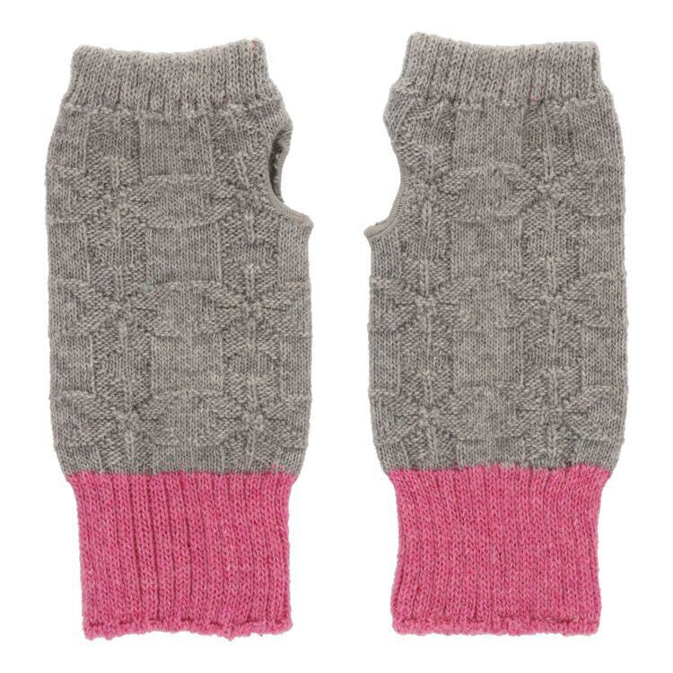 雪の模様のような編み込みと、ワンポイント刺繍がかわいいグローブです。
