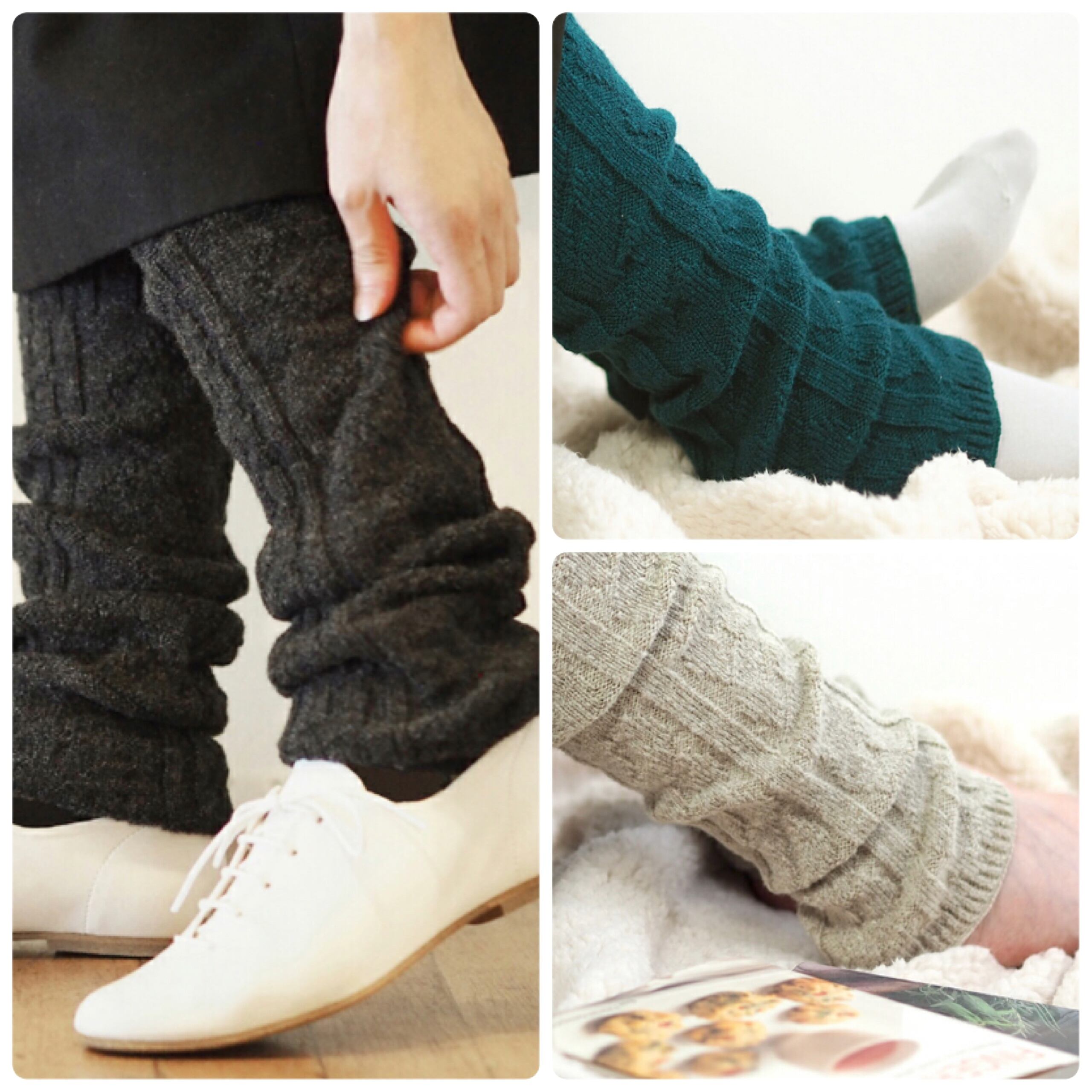 ウール混の糸によりふんわりあたたか。伸ばして履いてふくらはぎまで温め縮めて履いて足首を温められます。編み模様の凹凸がレリーフ(浮き彫り)のような奥行きのあるデザイン。