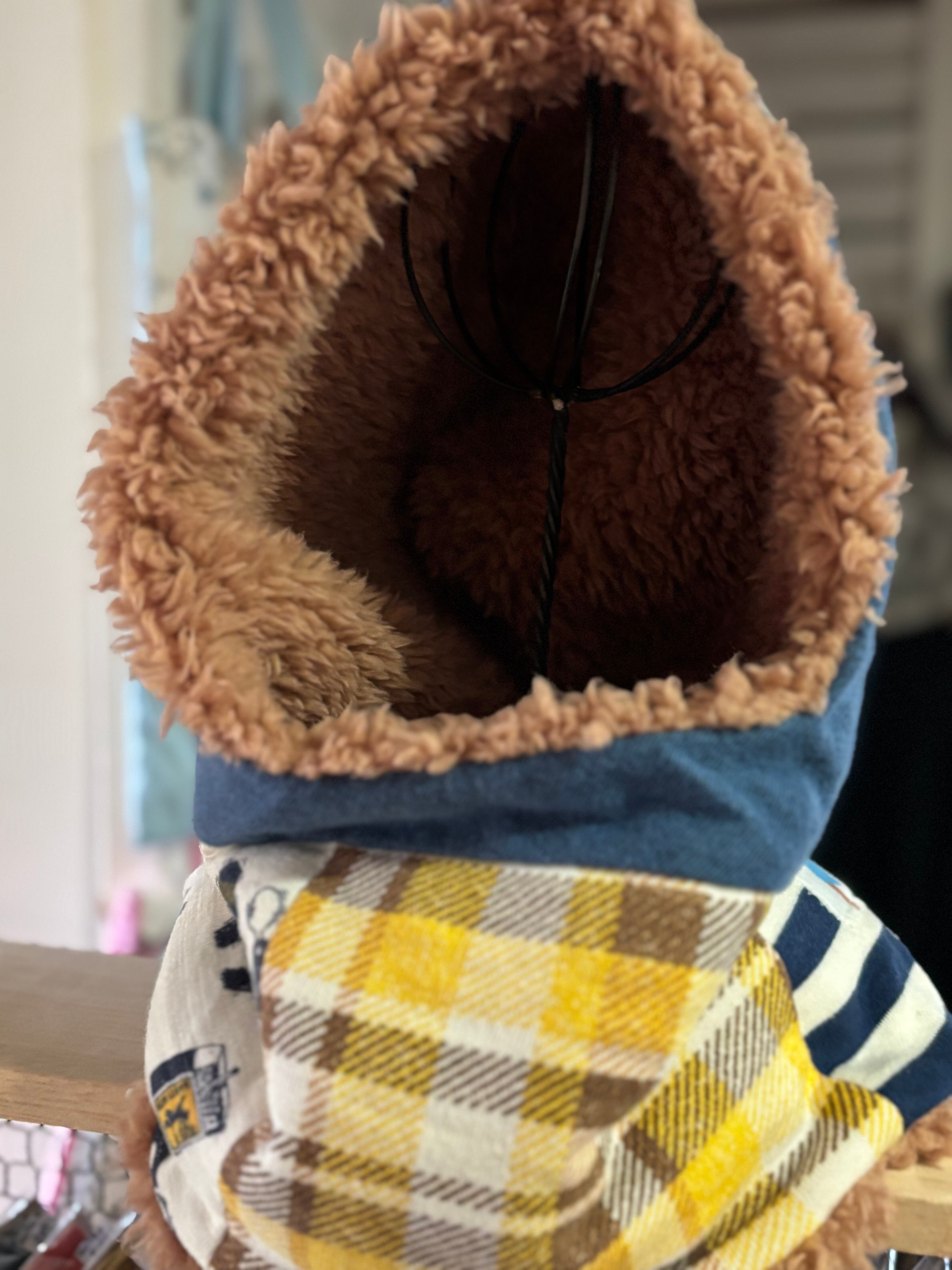 サイズは(平置き)縦約33cm・横約25cm・ネックウォーマー高さ約14cm)/ニット・起毛コットン・ウール・プードルファー