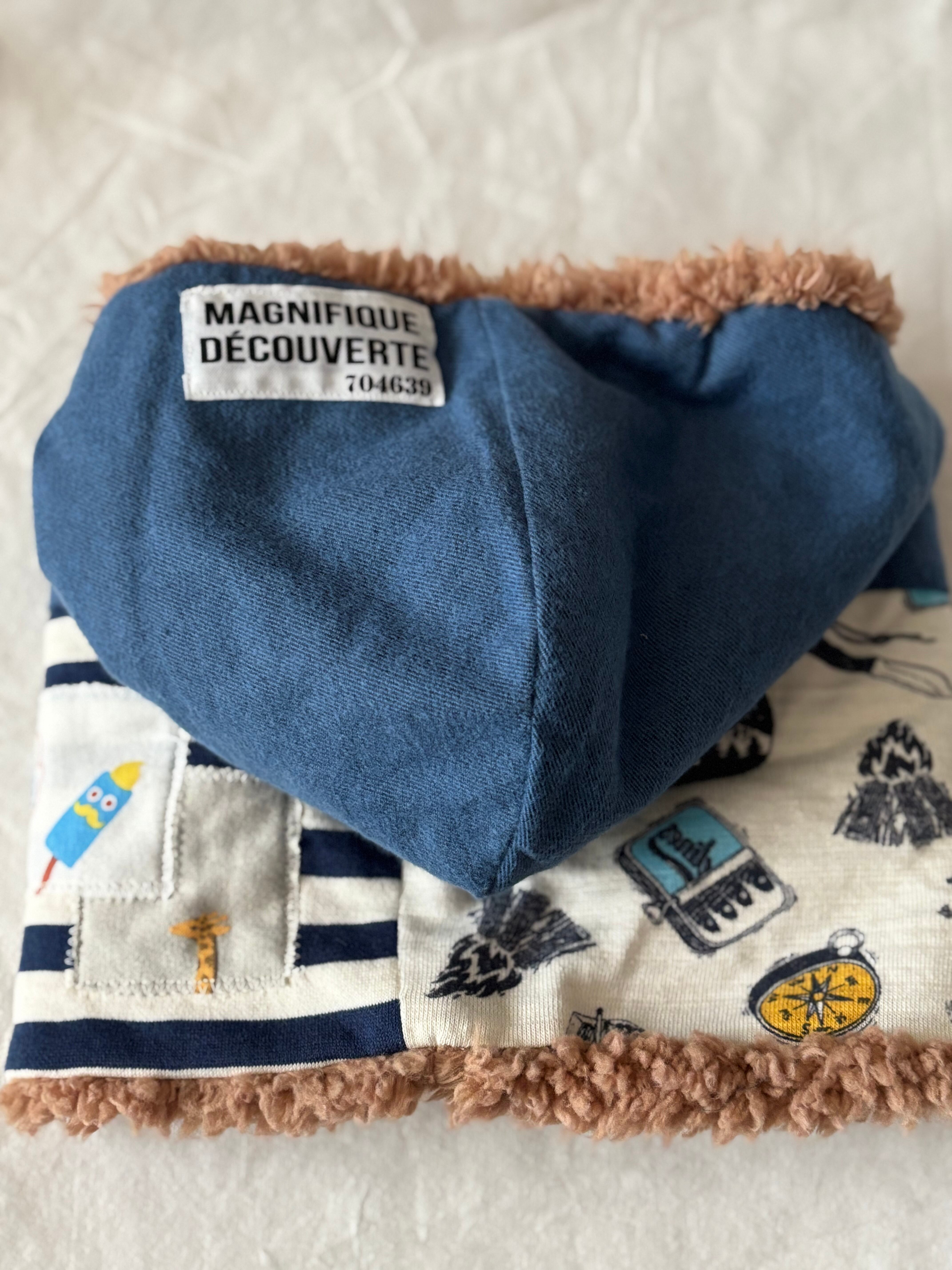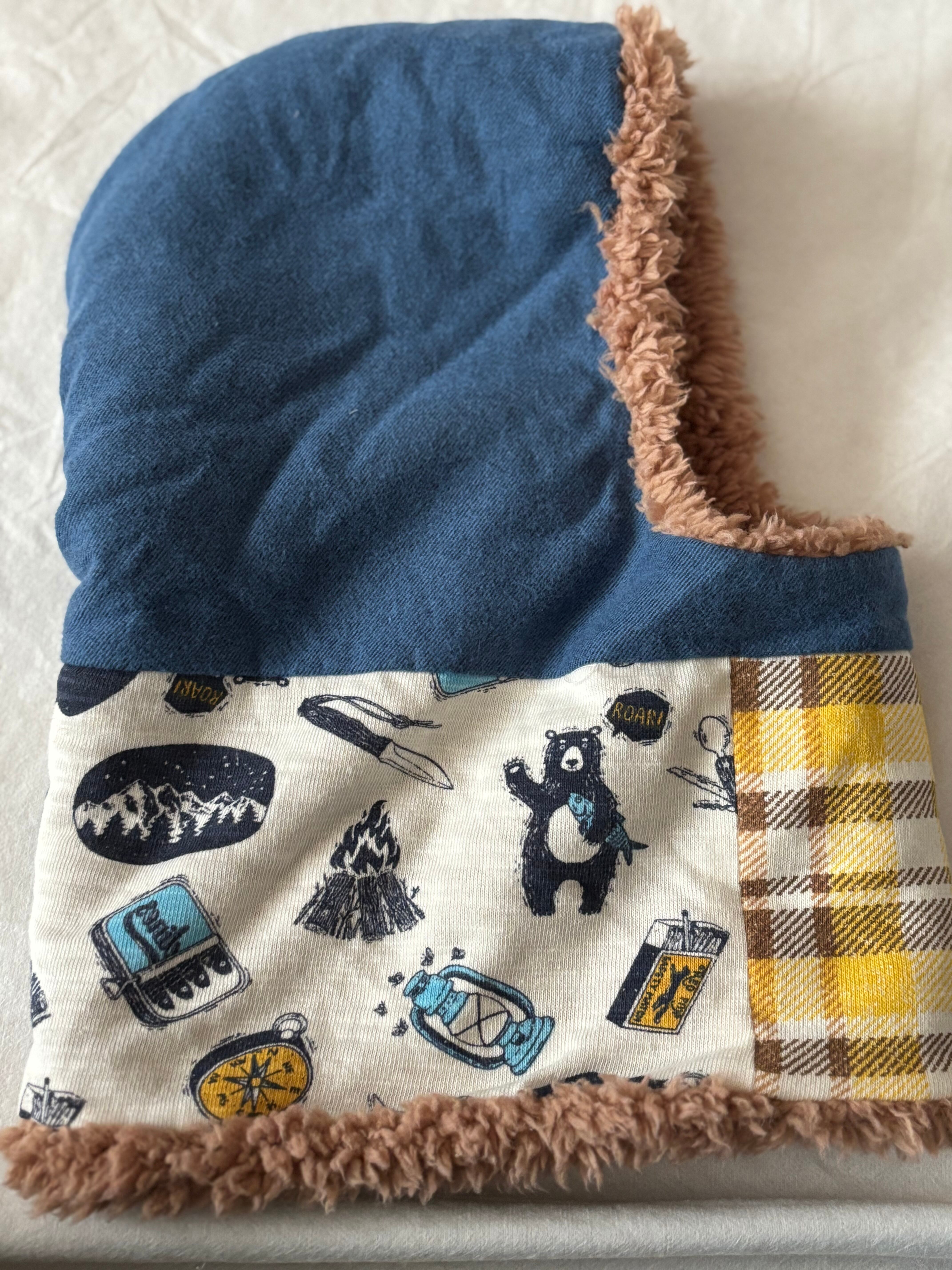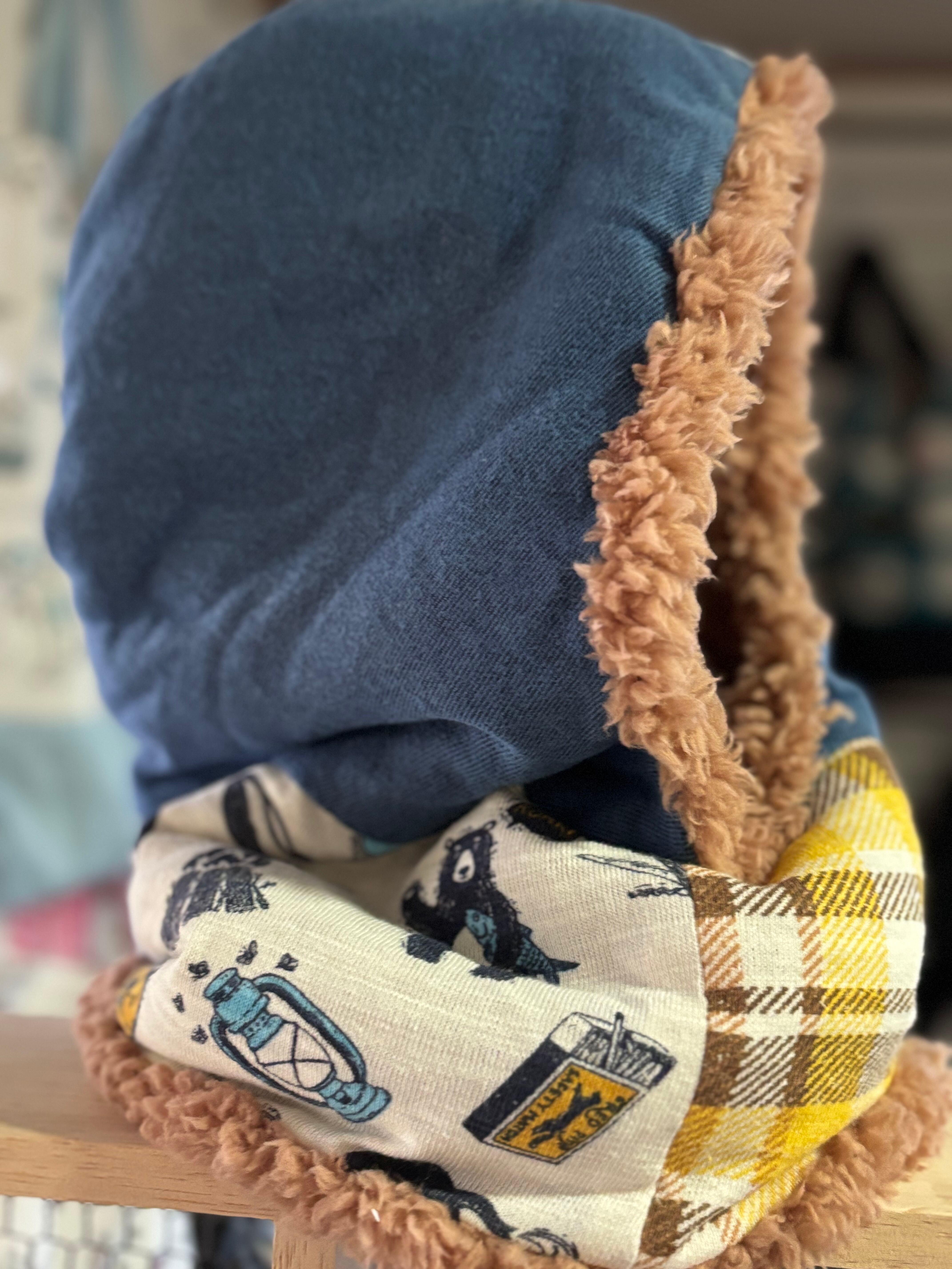 baby 〜3歳位 フードネックウォーマー⑤ クマキャンプ×イエロー×ブルー マフラー agnelet
