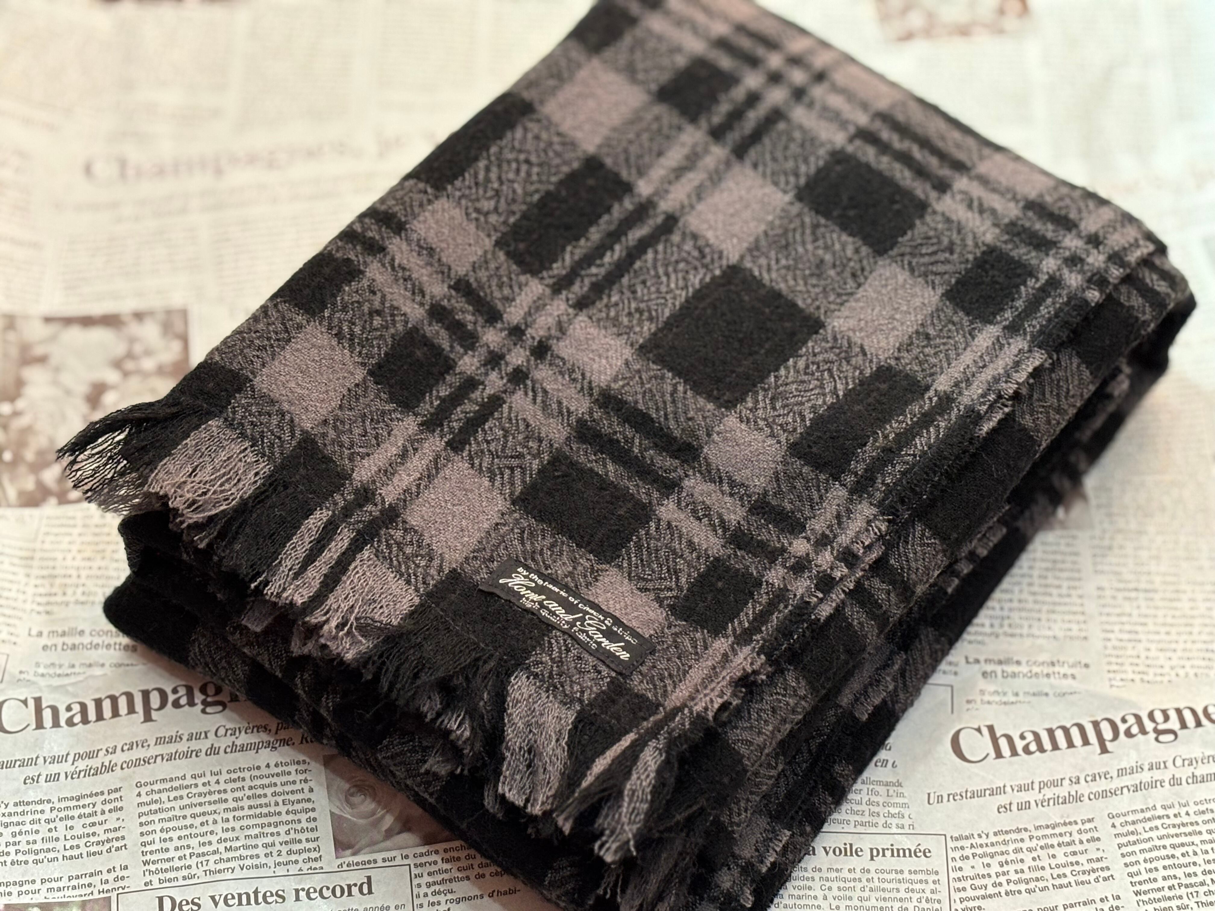大判 ウールストール グレー×ブラック チェック柄 agnelet